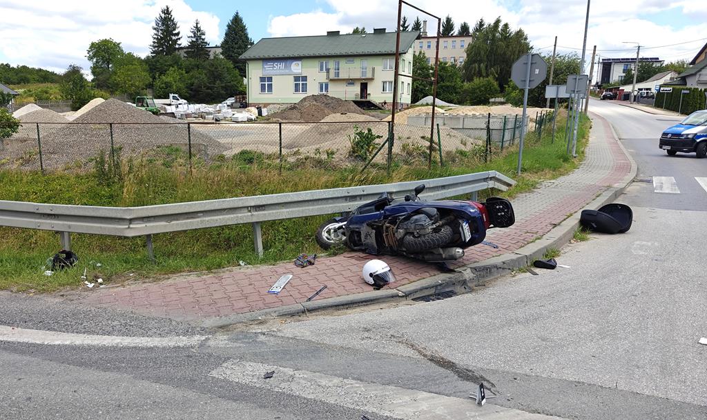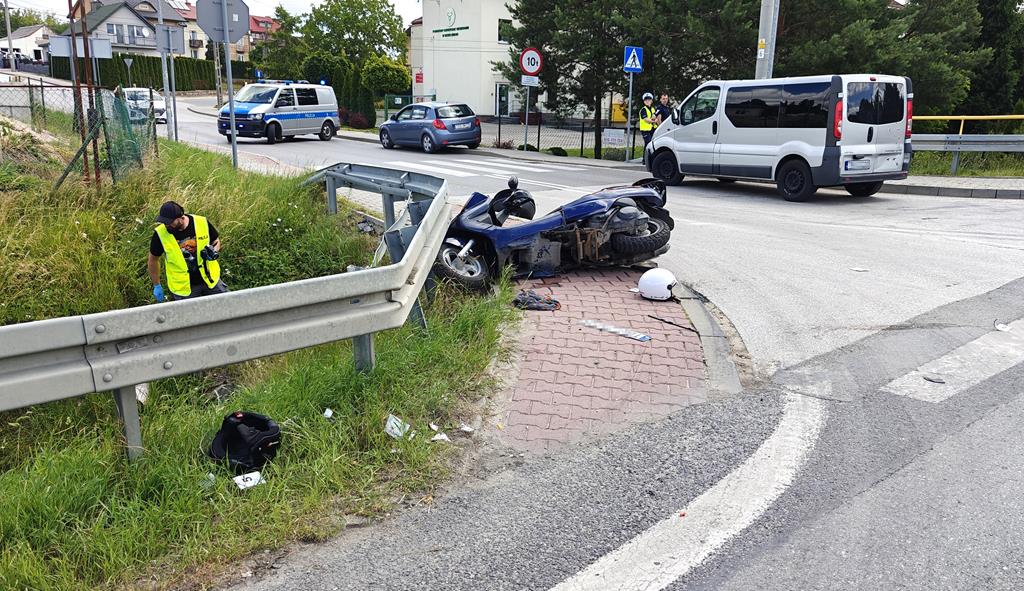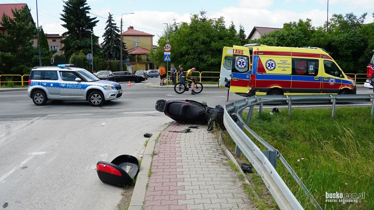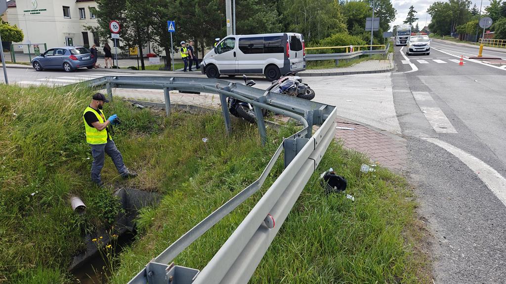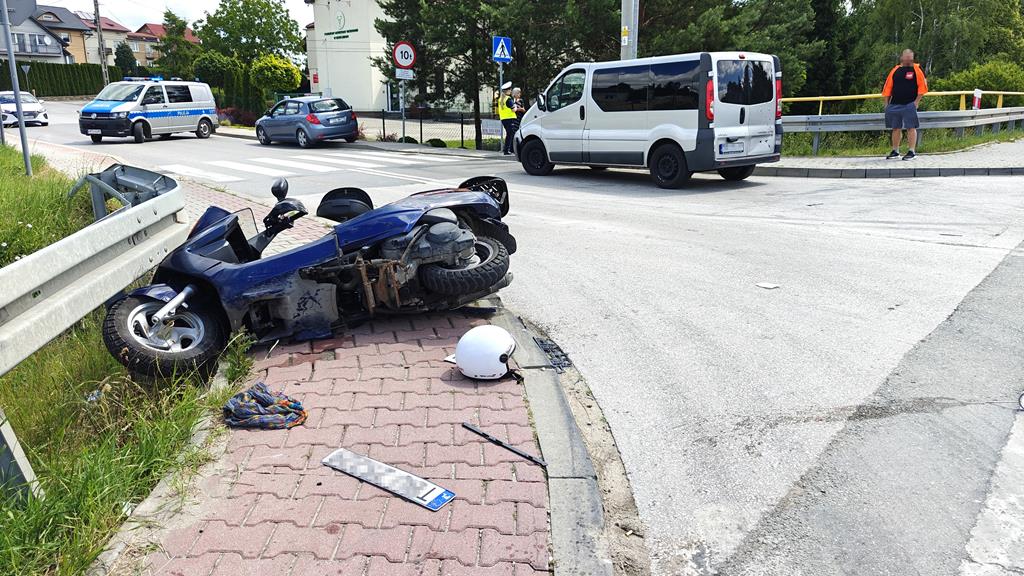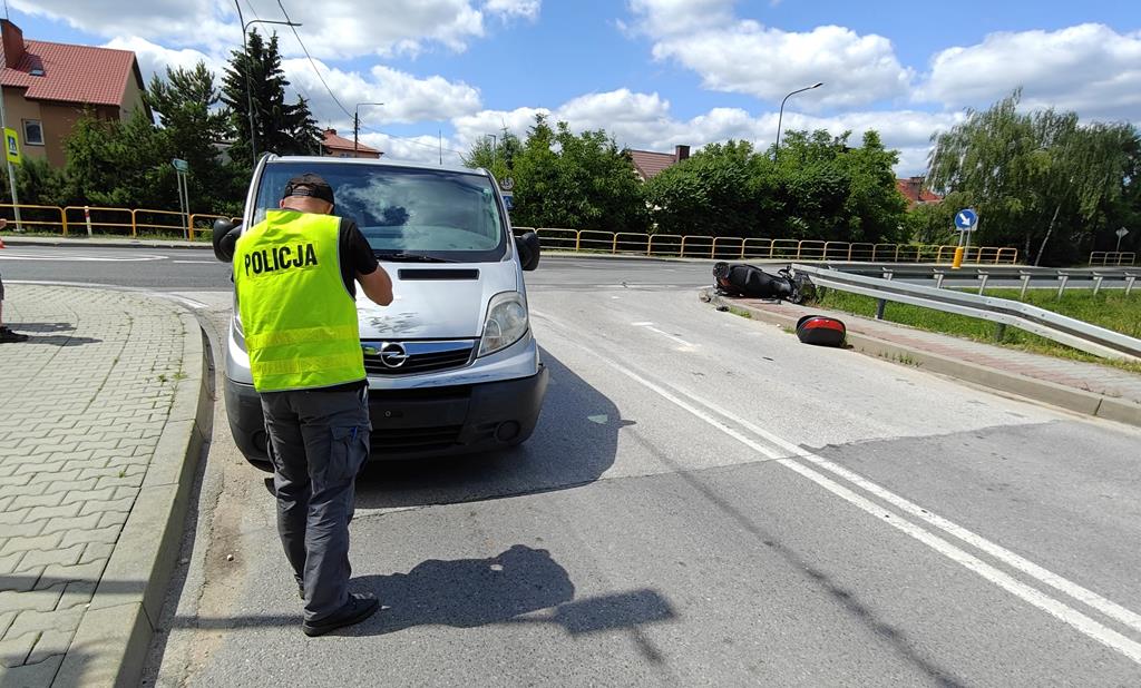 ○ 28.06.2025 r., około godziny 10:00 w Busku-Zdroju na skrzyżowaniu ul. Objazdowej z ul. Łagiewnicką, DK73’, doszło do poważnego wypadku z udziałem furgonetki Opel Vivaro i motocykla Yamaha / fot. infoBusko.pl