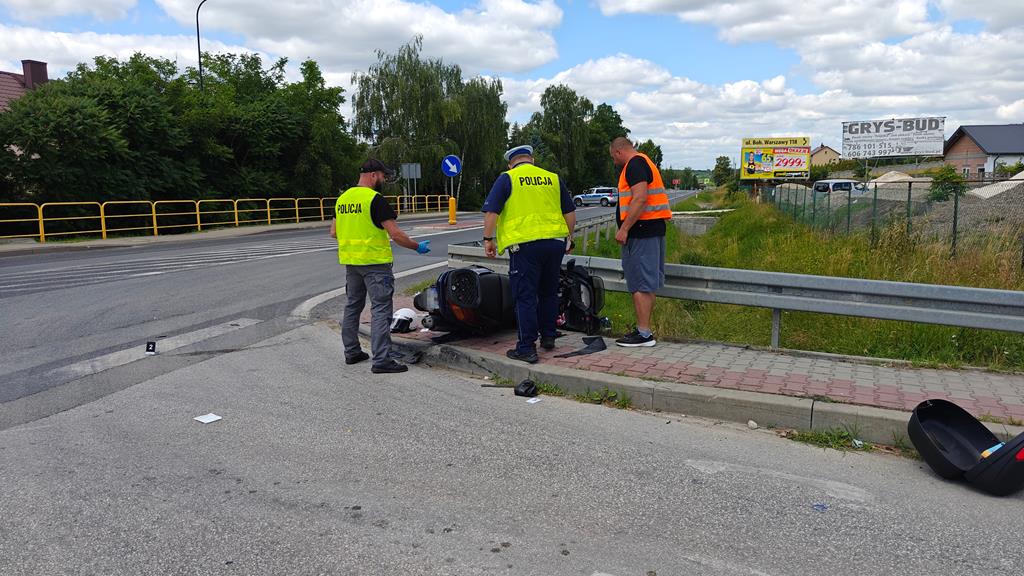 Jak poinformował sierż. szt. Piotr Pazera z Komendy Powiatowej Policji w Busku-Zdroju, według wstępnych ustaleń 40-letni kierowca busa, wyjeżdżając z drogi podporządkowanej, prawdopodobnie nie ustąpił pierwszeństwa przejazdu 81-letniemu motocykliście. W wyniku zderzenia ranne zostały dwie osoby podróżujące motocyklem marki Yamaha – kierowca oraz jego żona.