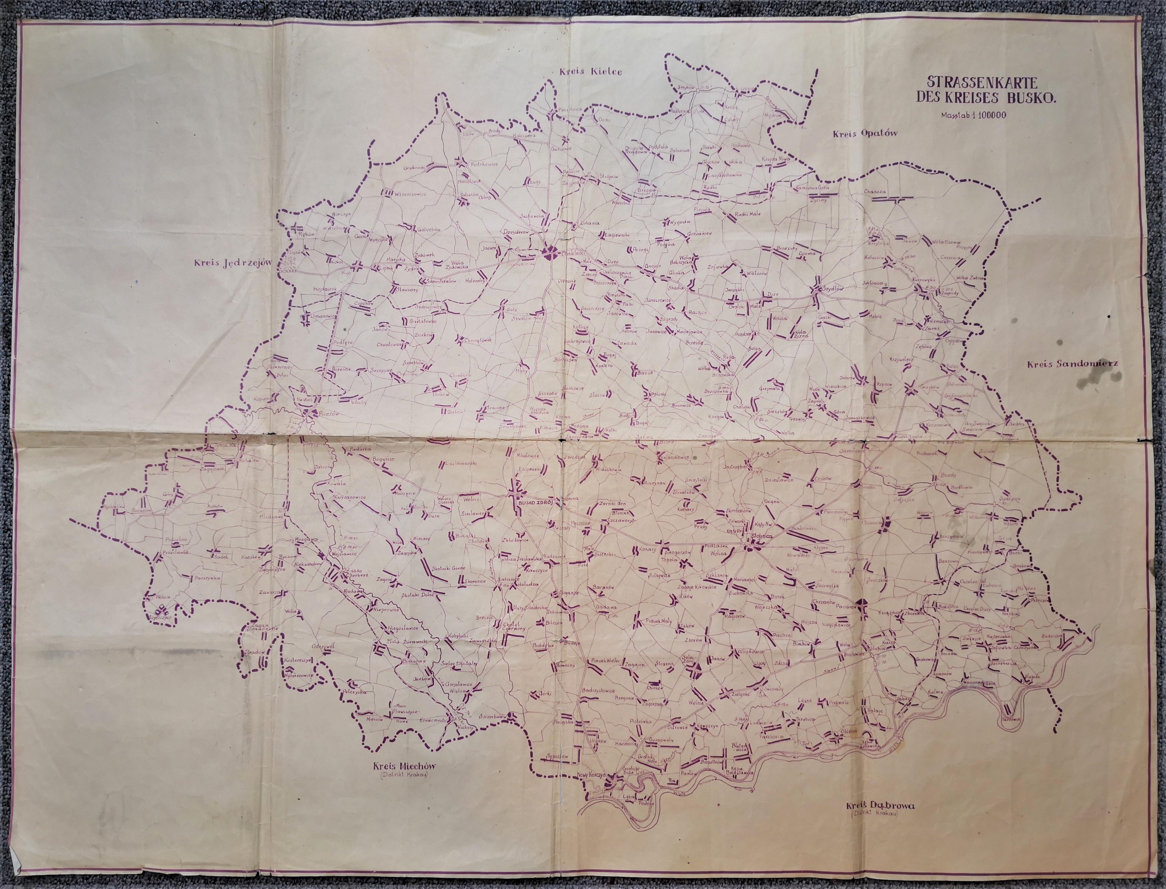 ○ Niemiecka mapa drogowa Kreis Busko z czasów II Wojny Światowej / źródło: Łukasz Kucharski
