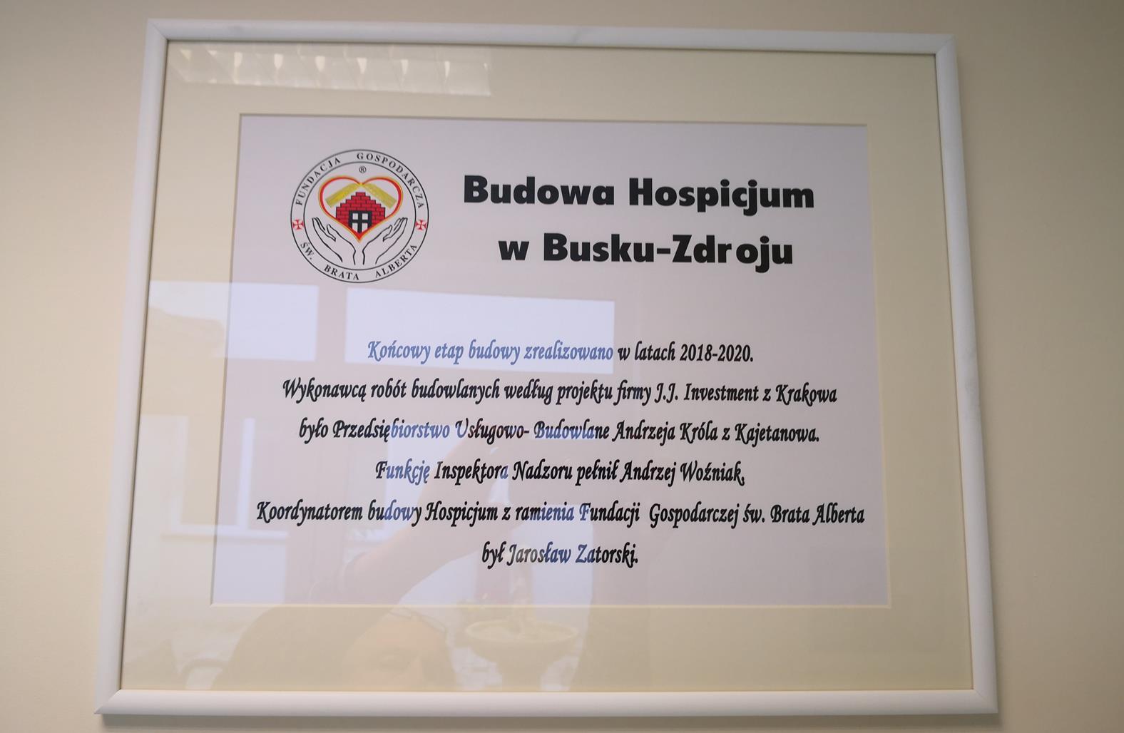 Jak mówi Marian Jaworski, prezes kieleckiej Fundacji Gospodarczej św. Brata Alberta, inwestycja przez wiele lat realizowana była bardzo powoli i z przerwami z uwagi  na braki środków finansowych. W 2018 r. nastąpił przełom, dzięki 10-milionowej unijnej dotacji wznowione zostały prace i budowa postępowała w szybkim tempie. Dziś, jak zaznacza prezes, jest już gotowy długo wyczekiwany obiekt o nazwie „Hospicjum Busko. Dzieło Ludzi Dobrego Serca”.
