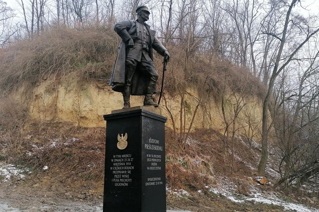 Odnowiony pomnik Marszałka Józefa Piłsudskiego stanął ponownie u styku Wisły i Dunajca w Opatowcu. Monument od połowy lat 90. XX wieku posadowiony jest przy lewym, świętokrzyskim brzegu wiślanej skarpy, w miejscu przeprawy promowej. – informuje 31.12.2021 portal Radio Kielce