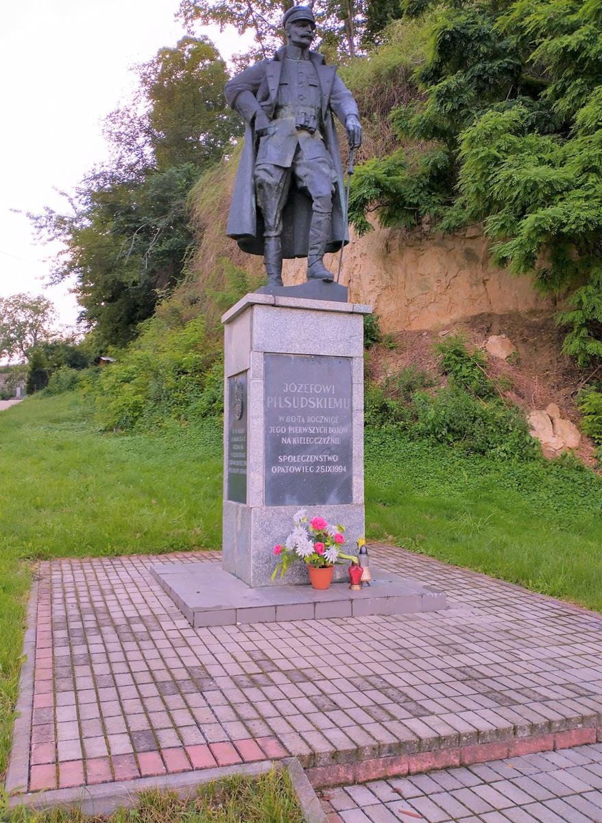 Józef Klemens Piłsudski – jak jest napisane w pierwszym akapicie jego biogramu na największej ogólnoświatowej @encyklopedii Wikipediia♂: – polski działacz społeczny i niepodległościowy, żołnierz, polityk, mąż stanu; od 1892 członek Polskiej Partii Socjalistycznej i jej przywódca w kraju, twórca Organizacji Bojowej PPS (1904) i Polskiej Organizacji Wojskowej (1914), kierownik Komisji Wojskowej i Tymczasowej Rady Stanu (1917), od 11 listopada 1918 naczelny wódz Armii Polskiej, w latach 1918–1922 naczelnik państwa, pierwszy marszałek Polski (1920); przywódca obozu sanacji po przewrocie majowym (1926), dwukrotny premier Polski (1926–1928 i 1930); wywarł decydujący wpływ na kształt polityki wewnętrznej i zagranicznej II RP – ma więc w Busku-Zdroju, porównując do umieszczonych w jego sąsiedztwie, lepiej wyeksponowanych obelisków, bardzo skromny pomnik.