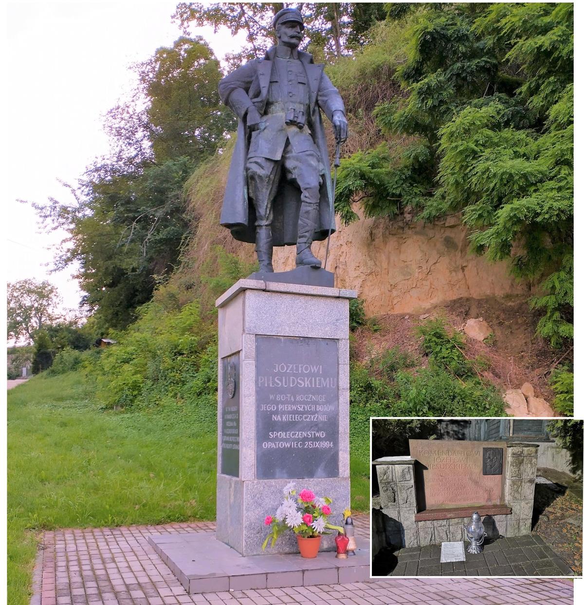 1.-12.Pomnik Józefa Piłsudskiego w Busku-Zdroju, 5.12.2021 r. fot. Jarosław Kruk, infoBusko.pl | 11. pomnik komendanta w Opatowcu / źródło: Wikipedia♂, 12. Zestawienie obu monumentów z przybliżonym zachowaniem wzajemnej proporcji.