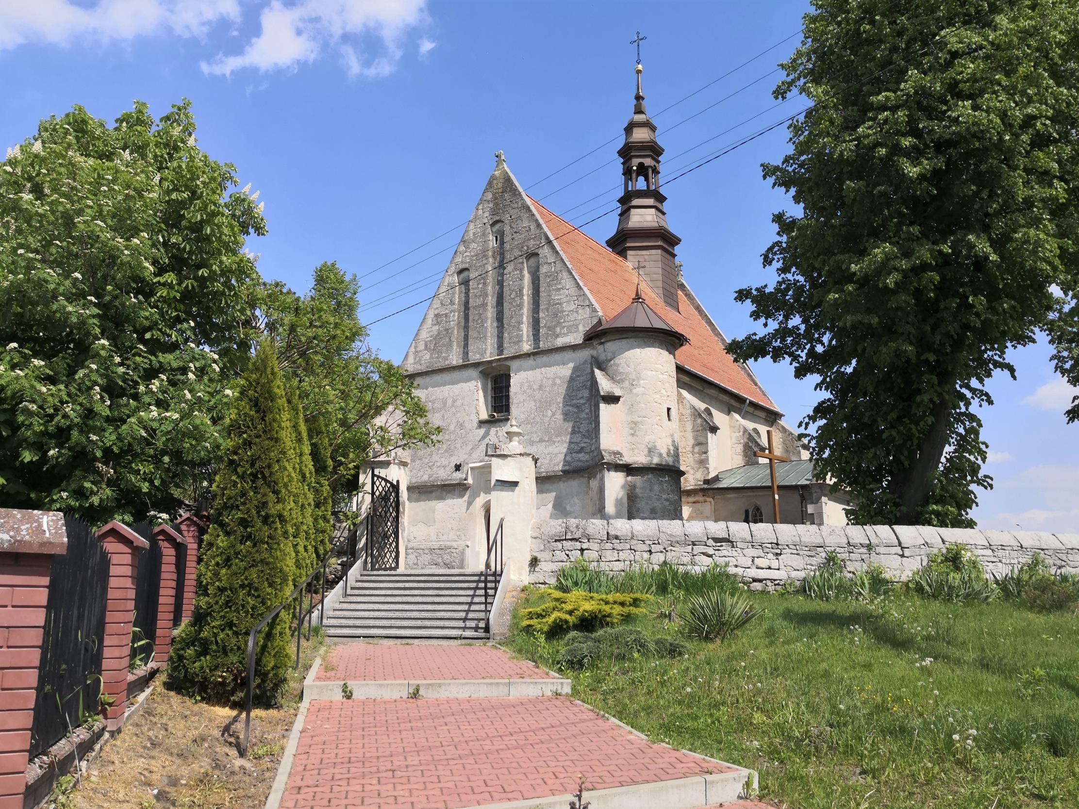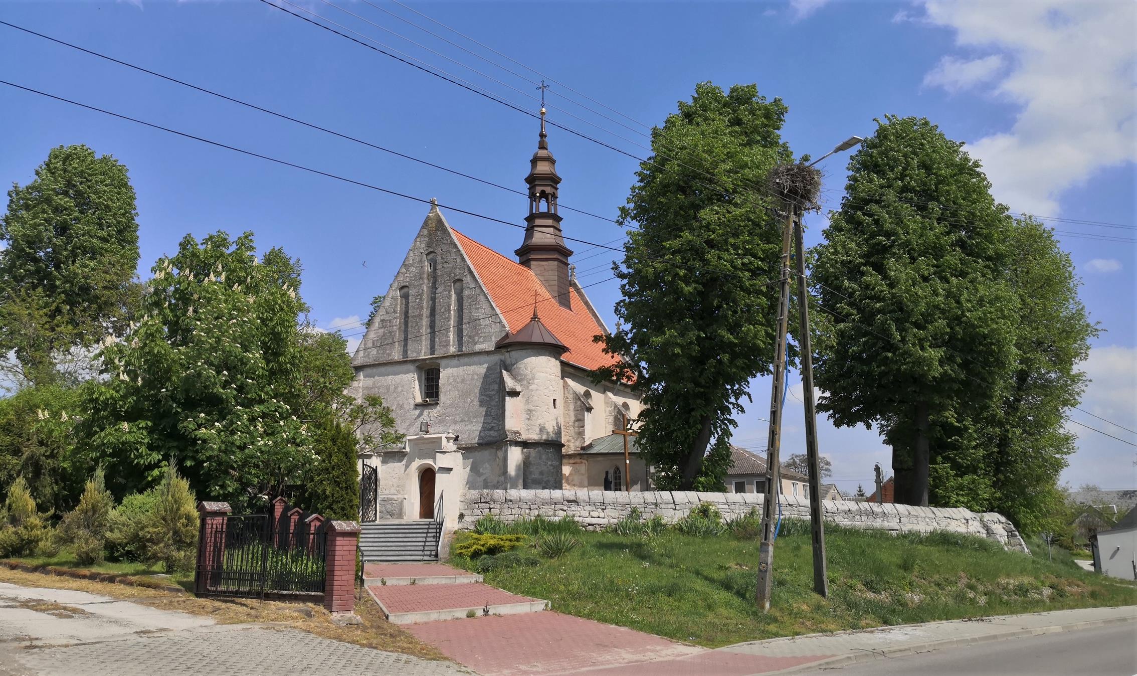 Rozbudowywany nieco w późniejszych wiekach obiekt dotrwał do dnia dzisiejszego w bryle nieco tylko zmienionej w stosunku do pierwotnej. Stosunkowo dobrze zachowane jest wnętrze i wystrój kościoła. Uwagę zwraca wyrzeźbione w czerwonym piaskowcu epitafium Jana Boboli herbu Leliwa, zmarłego w 1605 roku podkomorzego sandomierskiego, stryja świętego Andrzeja Boboli. Ufundował je jego syn Jakub, podczaszy sandomierski, stryjeczny brat świętego Kościoła katolickiego, autora tekstu ślubów lwowskich króla Jana Kazimierza zwanego apostołem Polesia oraz jednego z katolickich patronów Polski. Umieszczone jest na filarze między nawą, a północną kaplicą z obrazem Matki Boskiej Dobrowodzkiej.