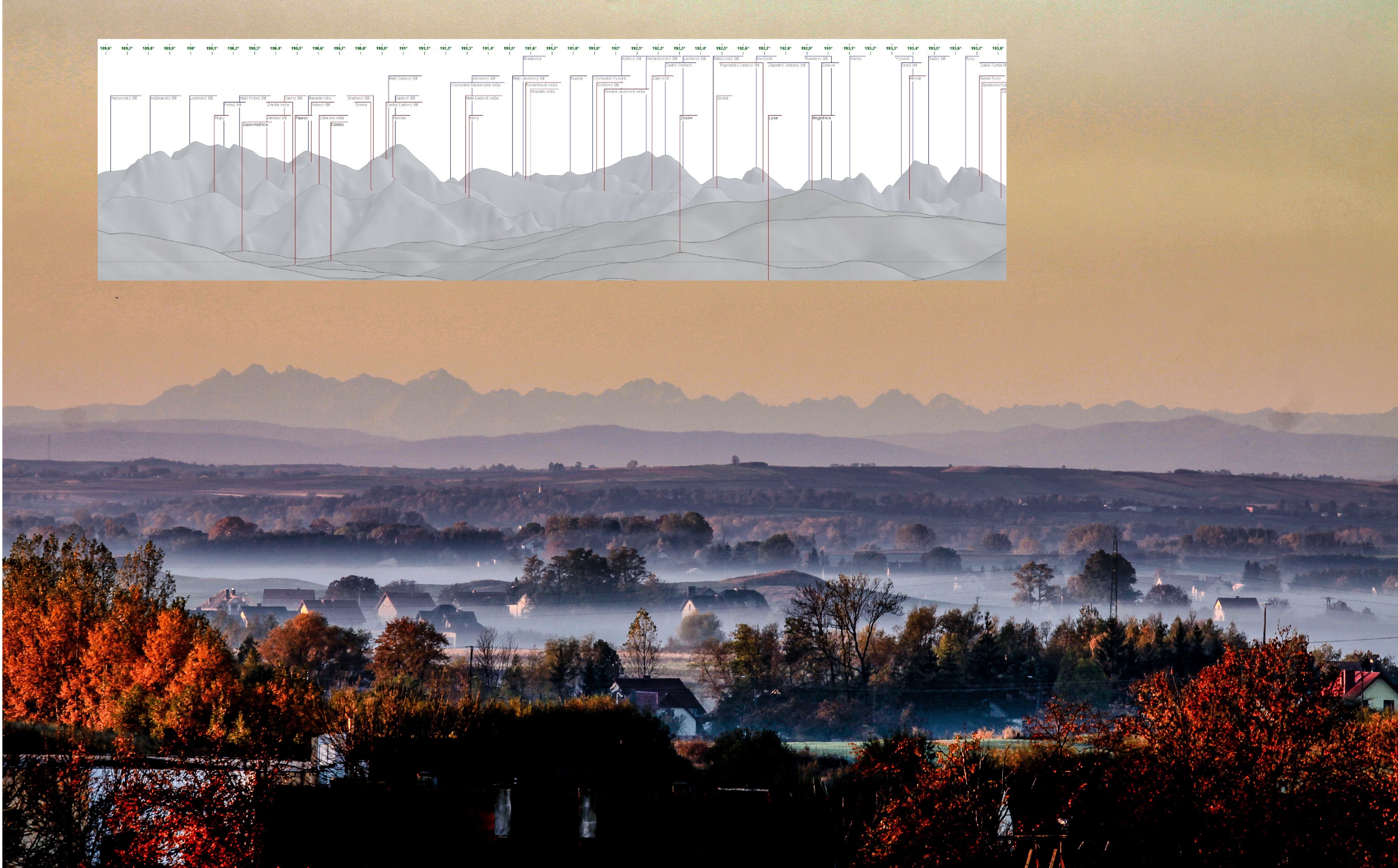 Tatry widziane z Wełcza z grafiką poglądową / źródło Marcin Baran i fb’Krajobrazy Ponidzia (kliknij na zdjęcie by powiększyć)