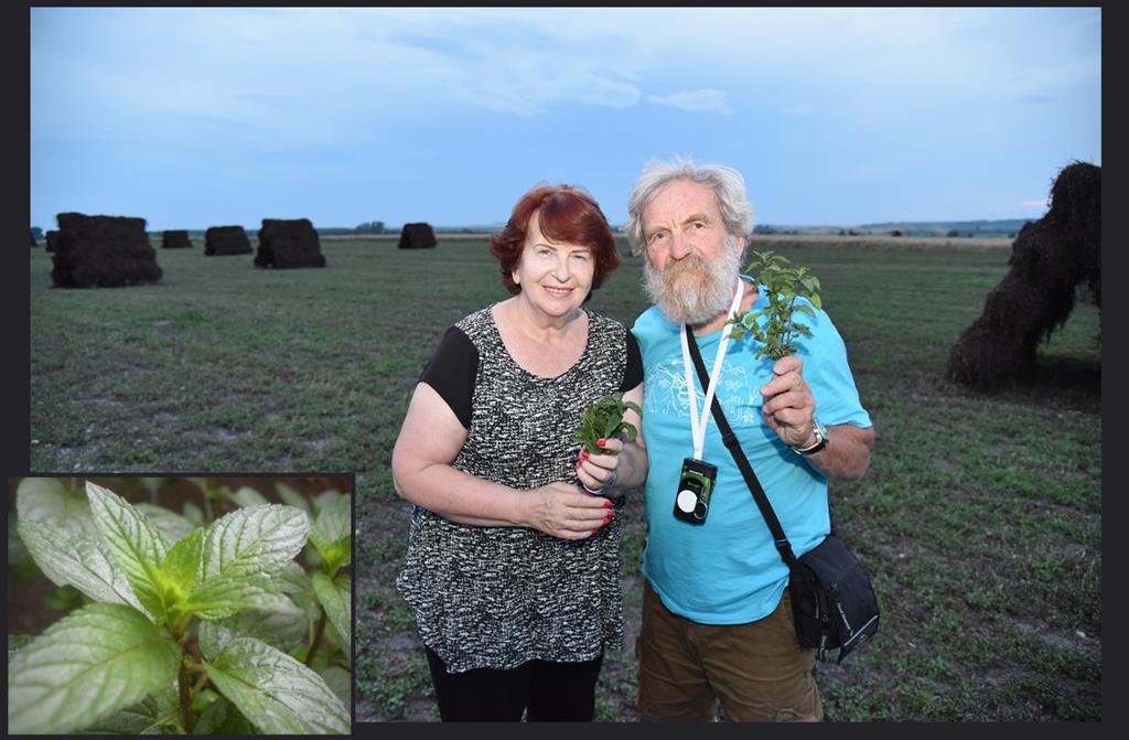 Pachnące miętą michałowskie pola w sierpniu 2020 r. podziwiali państwo Gabriela i Aleksander Doba♂  podczas  wizyty na Ponidziu. / fot. Jarosław kruk infoBusko.pl | Gałązka mięty pieprzowej / źródło: Wikipedia