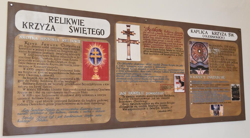 Tablica informacyjna w Sanktuarium Relikwii Drzewa Krzyża Świętego♂ na Łysej Górze♂ / fot. Jarosław Kruk