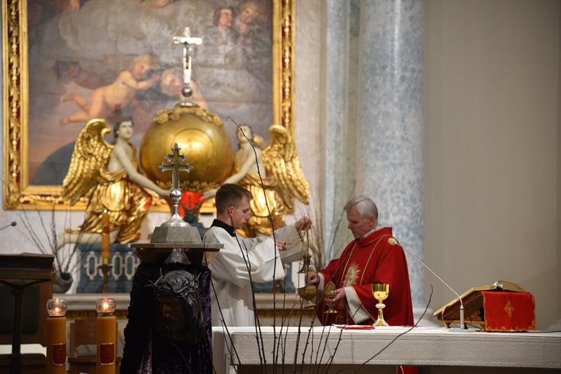 27.03.2022 r., Łysa Góra♂ , Sanktuarium Relikwii Drzewa Krzyża Świętego, Bazylika mniejsza pw. Trójcy Świętej♂: Msza święta z udziałem Rycerzy Kolumba♂ / fot. Jarosław Kruk infoBusko.pl