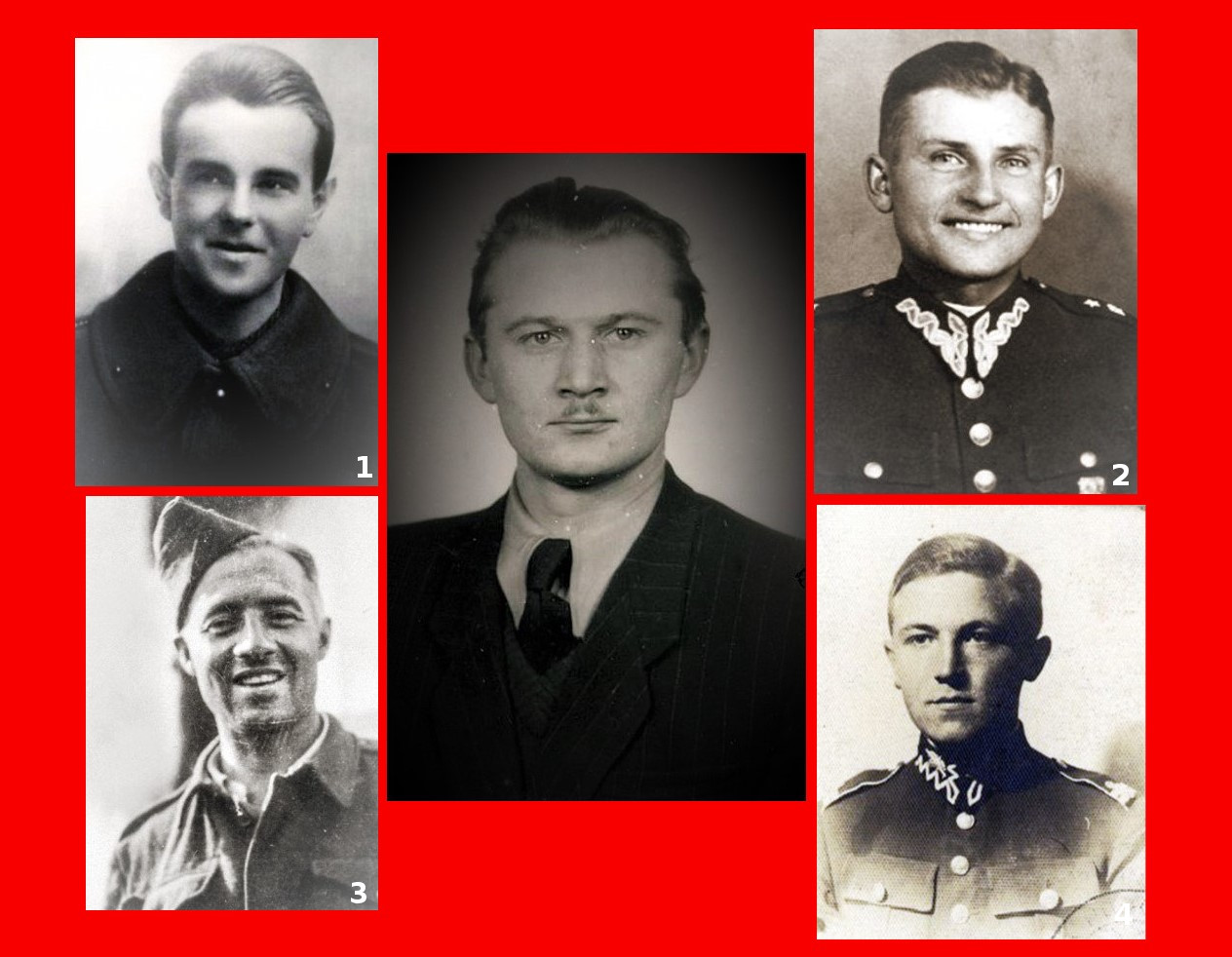 UBecka bestia Jerzy Kędziora i czworo spośród jego ofiar: 1. Hieronim Dekutowski , 2. Łukasz Ciepliński, 3. Marian Gołębiewski, 4. Wincenty Kwieciński / źródło: Wikipedia