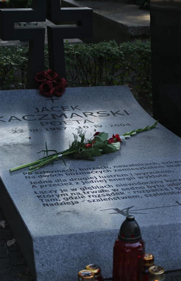 ♦ Wikipedia: Jacek Marcin Kaczmarski ♂ (ur. 22 marca 1957 w Warszawie, zm. 10 kwietnia 2004 w Gdańsku) – polski poeta, prozaik, kompozytor i piosenkarz, twórca tekstów piosenek. Znany głównie dzięki piosenkom o tematyce historycznej (Rejtan, czyli raport ambasadoraSen Katarzyny II, Lekcja historii klasycznej, Jałta, Ballada wrześniowa) i społeczno-politycznej (MuryNasza klasaObława). Postać powszechnie kojarzona z etosem pierwszej „Solidarności” oraz stanem wojennym – okresem, kiedy jego liryka, rozpowszechniana w nieoficjalnych wydawnictwach, identyfikowana była jako głos antykomunistycznej opozycji.♂