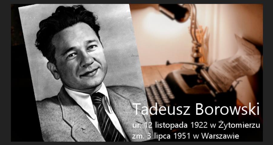 Kalendarium: 12 listopada 1921 r. w Żytomierzu urodził się Tadeusz Borowski, poeta, prozaik, publicysta, jeden z najbardziej znaczących pisarzy polskiej literatury powojennej, więzień niemieckich obozów śmierci Auschwitz i Dachau