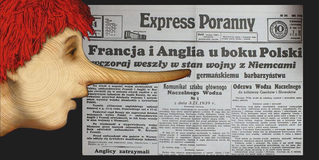○ Dziennik „Express Poranny” wydany 4 września 1939 r. / źródło: https://historia.org.pl♂ | ○ Pinokio / źródło: pik.wrocław.pl♂