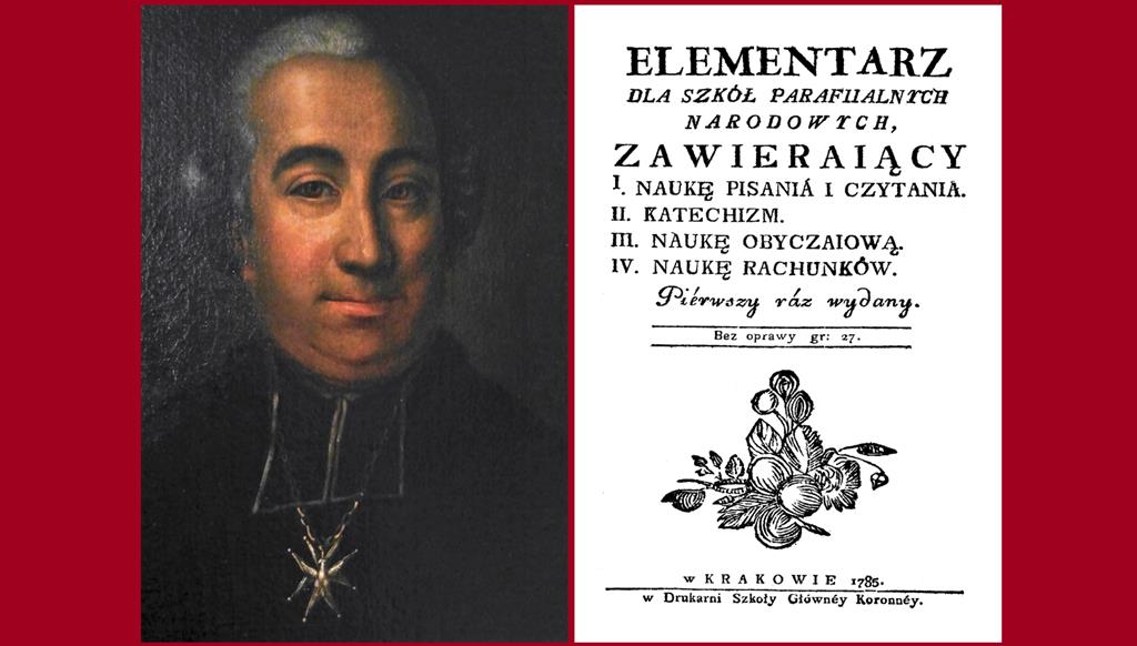 ○ Grzegorz Piramowicz – portret pędzla nieokreślonego malarza z XVIII w.♂ | Elementarz dla szkół parafialnych wyd. przez Towarzystwo do Ksiąg Elementarnych w 1785 r.♂