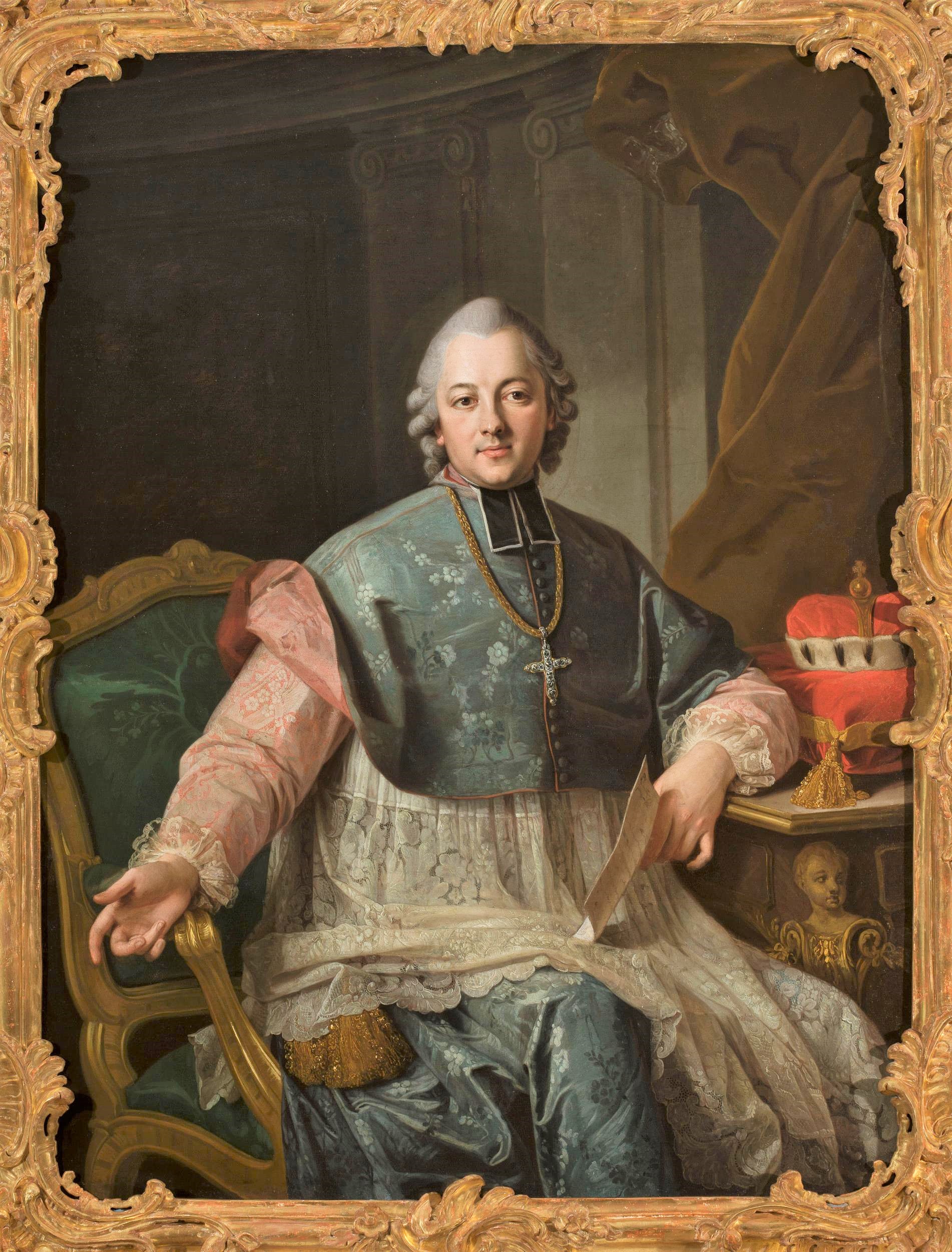 Wikipedia: – Ignacy Błażej Franciszek Krasicki herbu Rogala (ur. 3 lutego 1735 w Dubiecku, zm. 14 marca 1801 w Berlinie) – biskup warmiński od 1767, arcybiskup gnieźnieński od 1795, książę sambijski, hrabia Świętego Cesarstwa Rzymskiego, prezydent Trybunału Głównego Koronnego w Lublinie w 1765, proboszcz przemyski, kustosz kapituły katedralnej lwowskiej w 1765 roku, poeta, prozaik, publicysta i encyklopedysta, kawaler maltański zaszczycony Krzyżem Devotionis, mianowany biskupem tytularnym Verinopolis w 1766 roku. Cały biogram – po kliknięciu na link