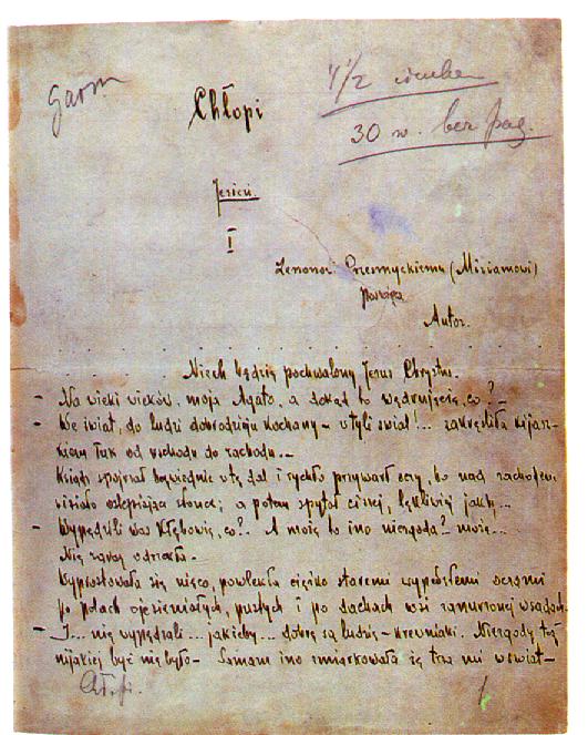 Dokładnie takie słowa mogli odczytać czytelnicy „Tygodnika Ilustrowanego”, wczesnym rankiem mroźnego dnia, 18 stycznia 1902 roku, 120 lat temu. Nad tymi słowami widniało jeszcze faksymile autora i tytuł wraz z podtytułem powieści – Władysław Stanisław Reymont, Chłopi, Część pierwsza – Jesień. Z prawej strony, pisana kursywą i drobnym drukiem, dedykacja – Miriamowi (Zenonowi Przesmyckiemu). – informuje PolskieRadio24.pl