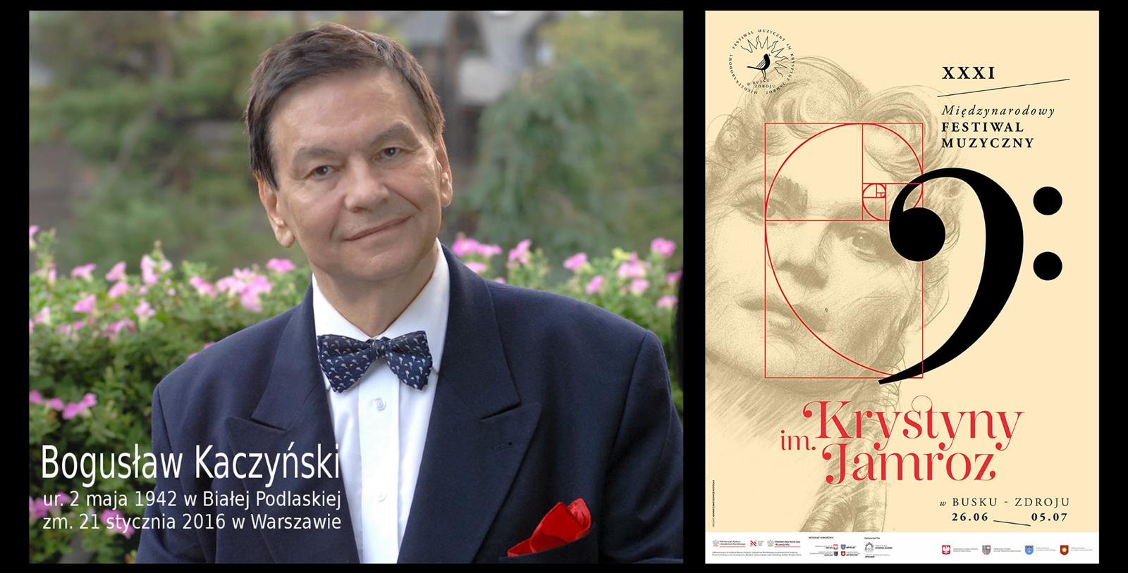 ○ Bogusław Kaczyński był pomysłodawcą Festiwalu Muzycznego im. Krystyny Jamroz’ w Busku-Zdroju. / fot:Ireneusz Sobieszczuk,Wikipedia | ○ Plakat XXXI edycji MFM im. Krystyny Jamroz / źródło: BSCK