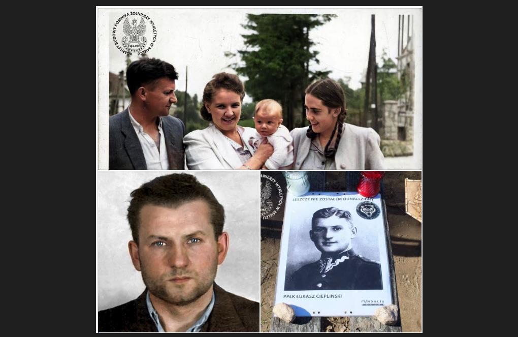 ○ Postać Pana Pułkownika znajduje wśród innych figur na Pomniku Żołnierzy Wyklętych Niezłomnych w Mielcu♂. PS. zdj. 1 Szczęśliwa rodzina – Łukasz z żoną Jadwigą i synem Andrzejkiem i chrześnicą Jadwigi Hanną (zdj. Hanny Górskiej), zdj. 2 zdj. Z Mokotowa, z więzienia. zdj. 3 „Jeszcze mnie nie odnaleziono”