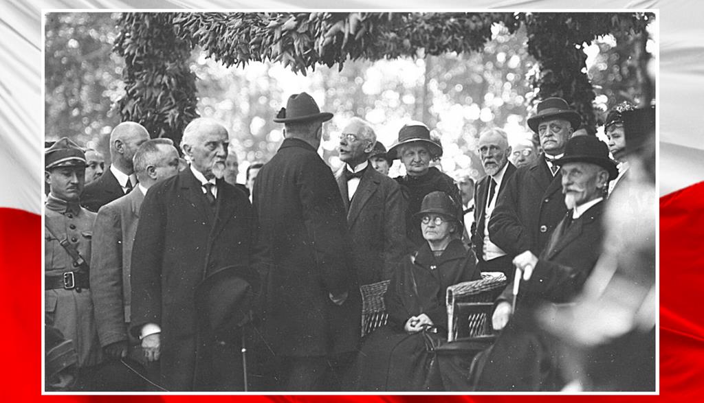 ○ Maria Skłodowska-Curie (na krześle) podczas uroczystości wmurowania aktu erekcyjnego pod budowę Instytutu Radowego w Warszawie / Foto: Narodowe Archiwum Cyfrowe♂ /Domena publiczna / źródło: PolskieRadio.pl♂