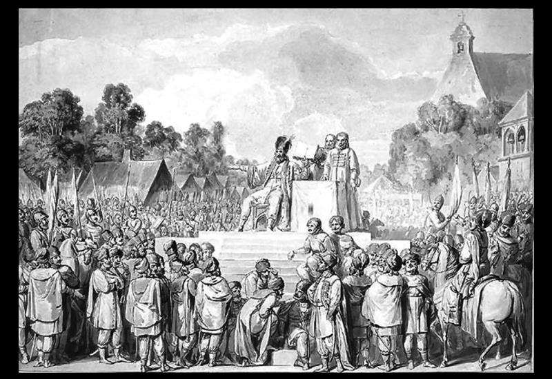 ○ „Kazimierz Wielki, sejm w Wiślicy”♂, rysunek Franciszka Smuglewicza (przed 1807) / źródło: Muzeum Narodowe w Kielcach – Muzeum Archeologiczne w Wiślicy♂