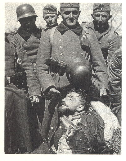 Zdjęcia – źródło Wikipedia: 1. mjr Henryk Dobrzański , 1938 r.; 2. Henryk Dobrzański (trzeci z lewej) w towarzystwie pozostałych członków polskiej kadry jeździeckiej; 3. mjr Henryk Dobrzański „Hubal” ze swoimi żołnierzami, zima 1939 / Wikipedia; 4. 30.04.1940 r., żołnierze niemieccy z 372 Dywizji Piechoty po potyczce pod Anielinem z ciałem majora; 5. Szaniec „Hubala” w lesie pod Anielinem, miejscu śmierci mjr H. Dobrzańskiego. – fot. Jarosław Kruk/ Wikipedia
