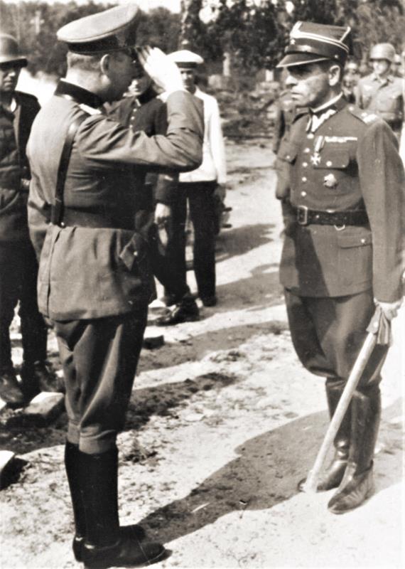 ○ Mjr Henryk Sucharski♂ i gen. Friedrich-Georg Eberhardt♂ i podczas kapitulacji Westerplatte, 7 września 1939 r. / źródło: Wikipedia♂