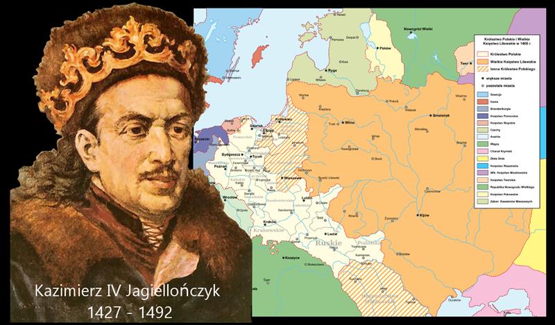 ○ Kazimierz IV Andrzej Jagiellończyk♂ | Królestwo Polskie i Wielkie Księstwo Litewskie w 1466 r.♂ / źródło: Wikipedia