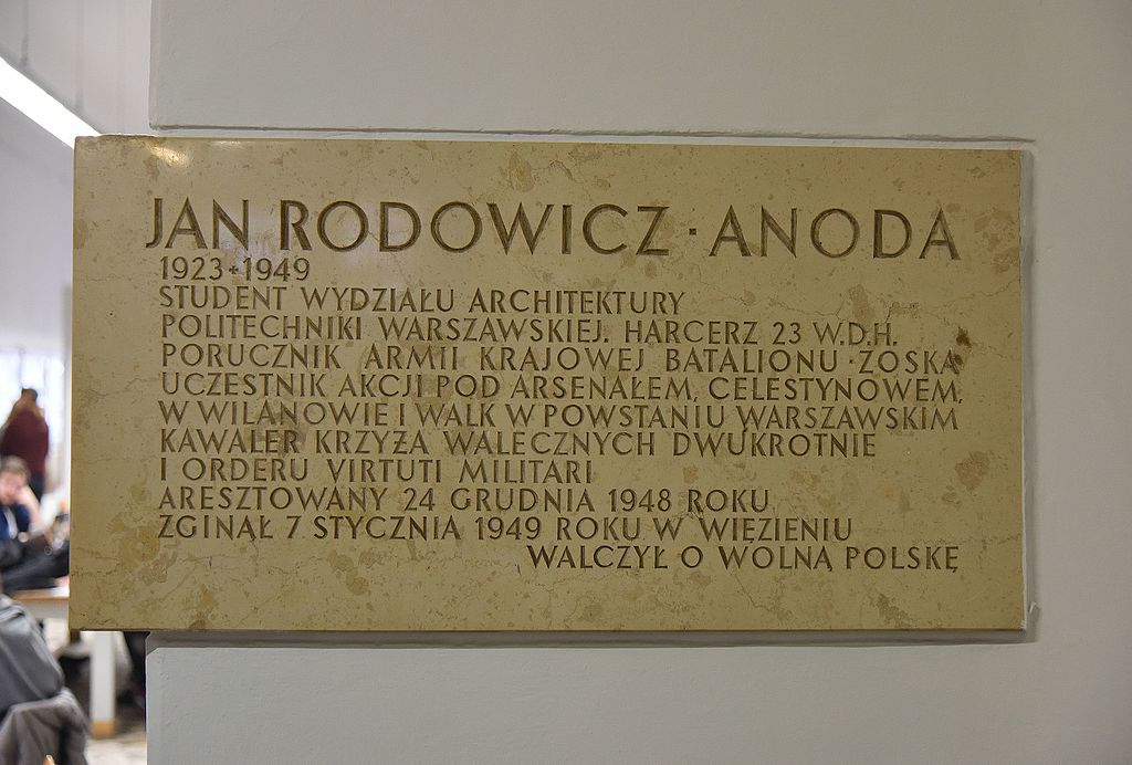 - Tablica pamiątkowa w gmachu Wydziału Architektury Politechniki Warszawskiej / fot. Adrian Grycuk; Wikipedia