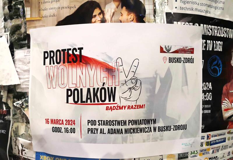 Klub Gazety Polskiej w Busku Zdroju: Protest Wolnych Polaków w Busku-Zdroju – 16 marca 2024 r., godz.16:00