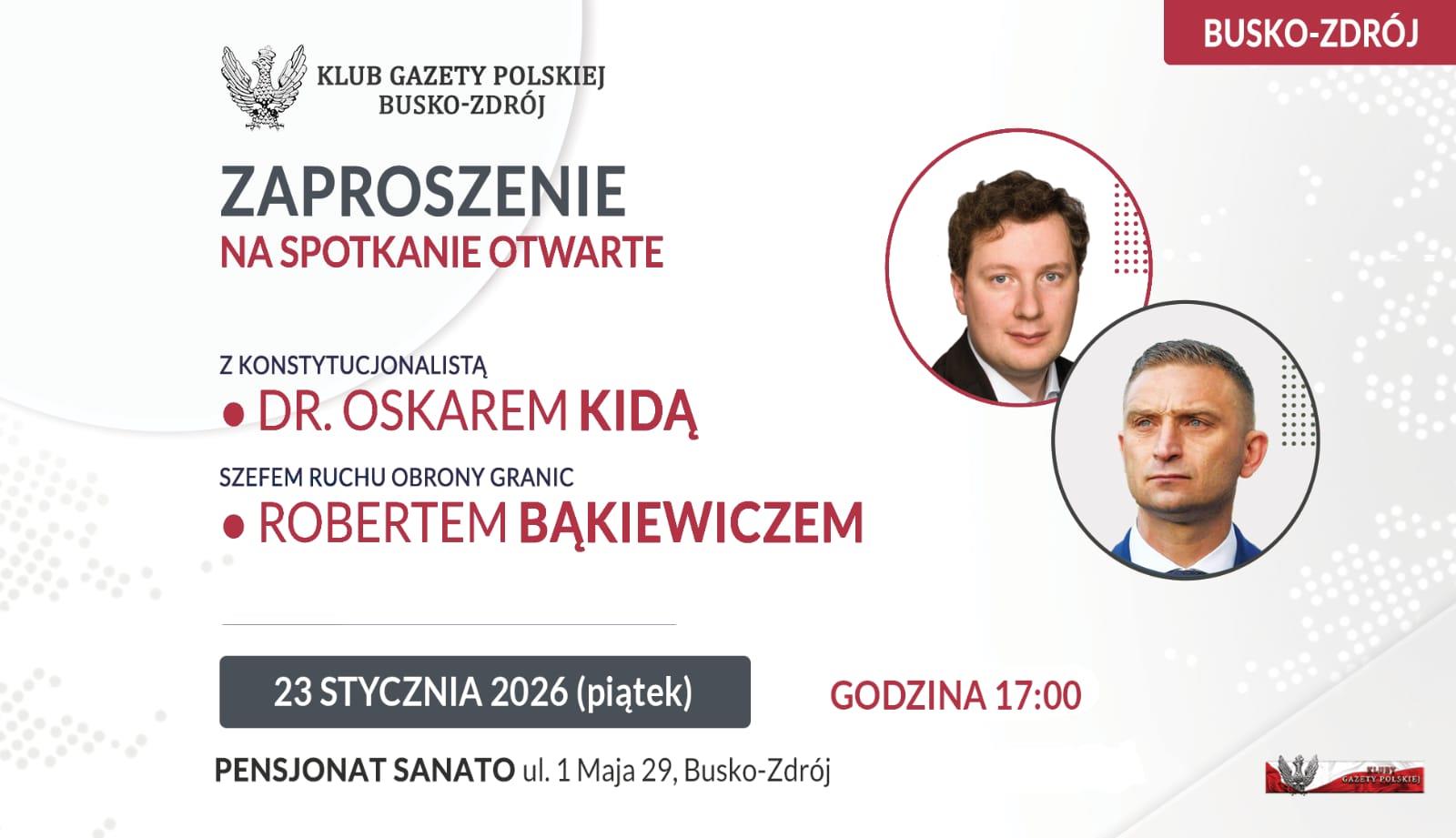 Klub Gazety Polskiej Busko-Zdrój zaprasza na spotkanie z dr Oskarem Kidą i Robertem Bąkiewiczem – 23 stycznia 2026 r. godz. 17:00 [FOTOGALERIA]
