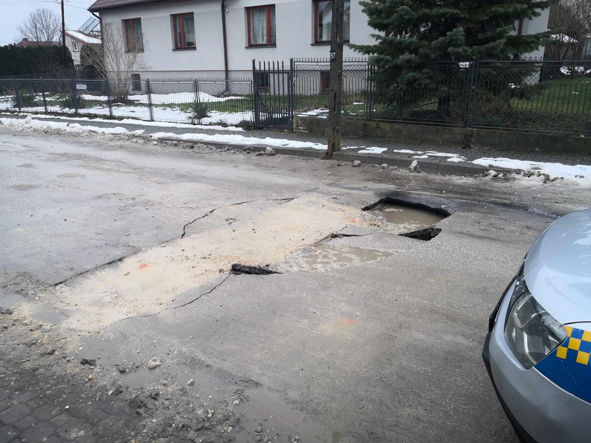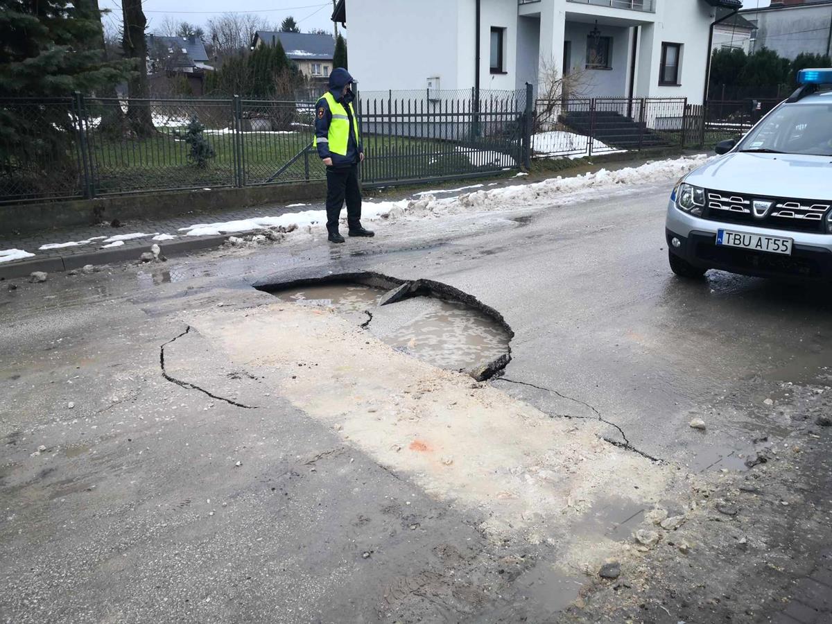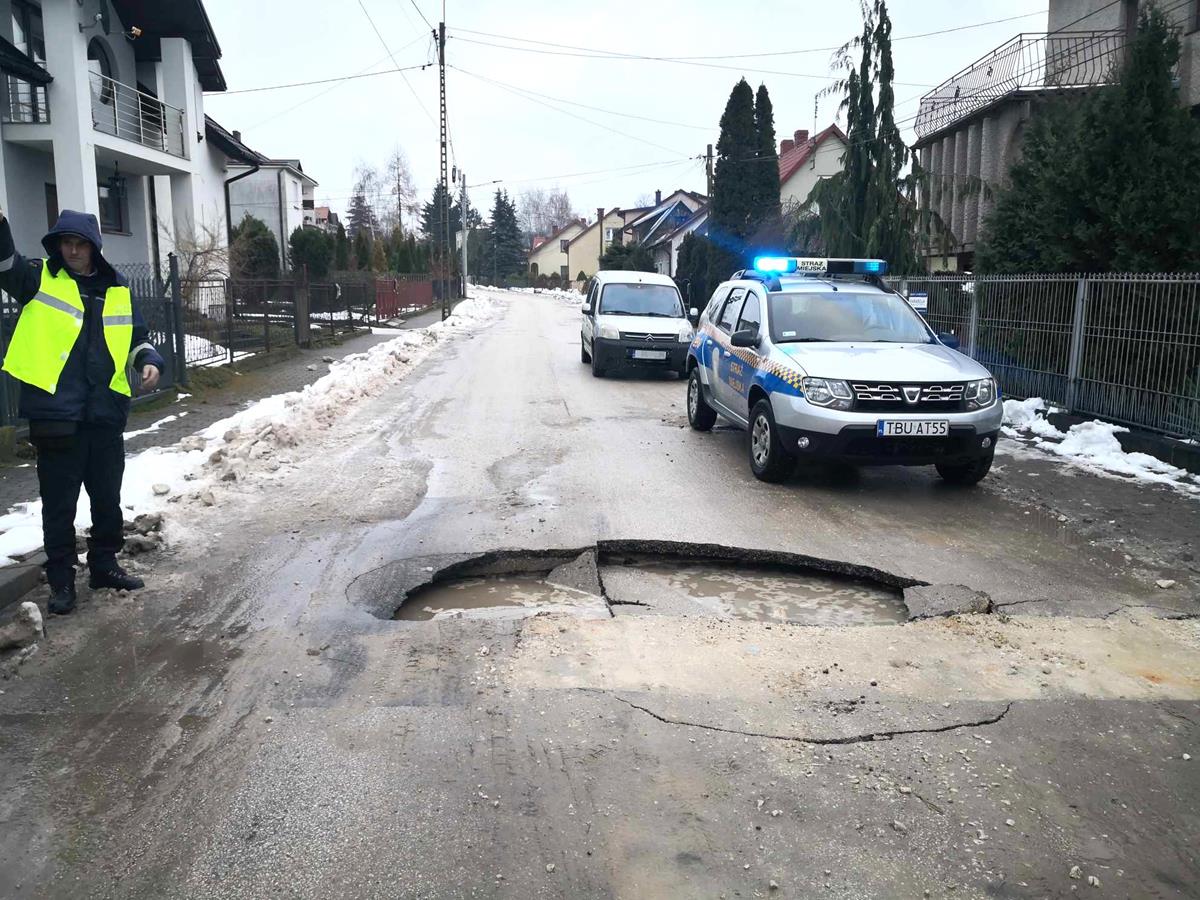 Dla wiadomości wszystkich znawców tematu. W tym miejscu była awaria na przyłączu wodociągowym do prywatnej posesji. Prace były prowadzone przy -7 stopni C i warunkach z dużymi opadami sniegu, żeby niezwłocznie przywrócić wodę do odbiorcy. Prawdopodobnie woda która wypływała z uszkodzonego przewodu podmyła asfalt i zamarzła i teraz przy plusowych temperaturach lód odmarzł i stąd to zapadlisko. Proszę nie snuć żadnych teorii spiskowych. Po zgłoszeniu przez Staż Miejska o powstałym zapadlisku, niezwłocznie zostało zniwelowane. I proszę się nie martwić droga będzie naprawiona i przywrócona do pierwotnego stanu kiedy warunki atmosferyczne na to pozwolą.