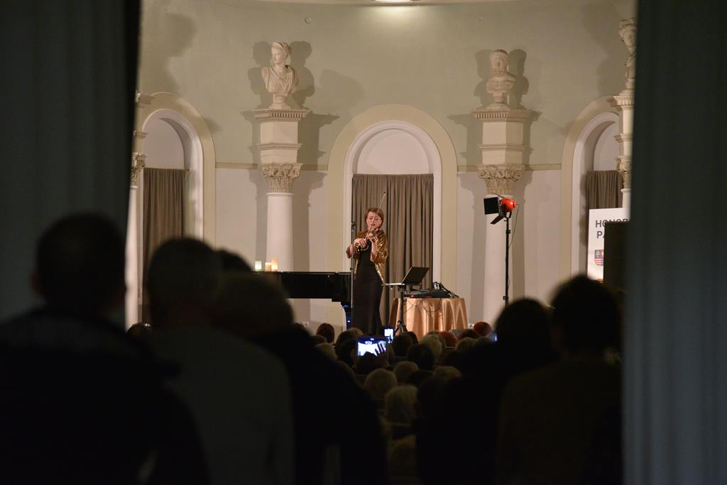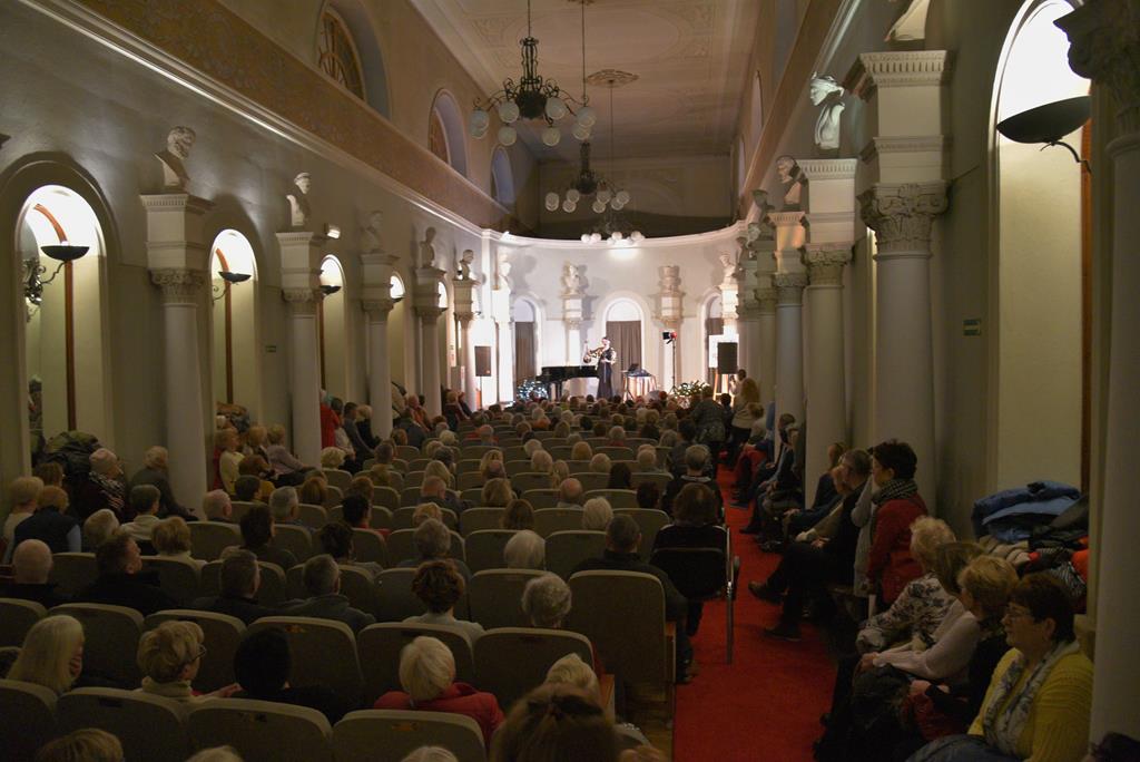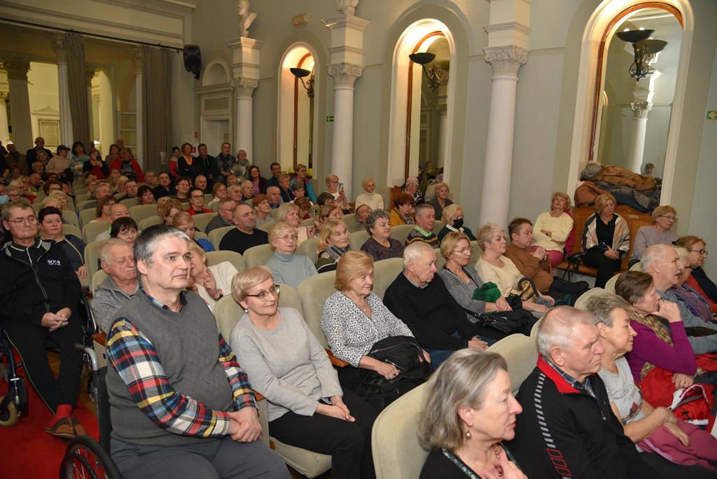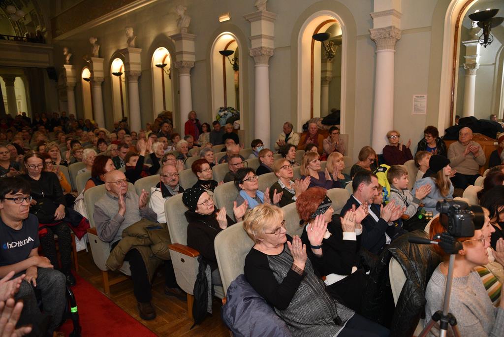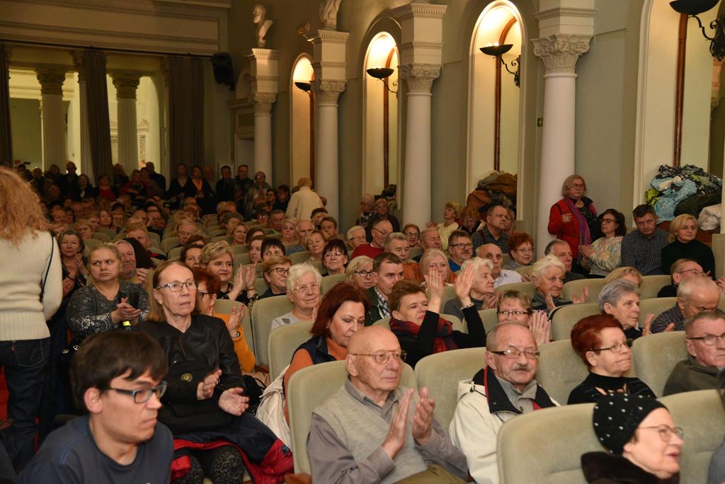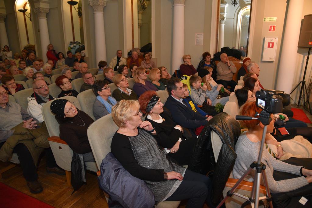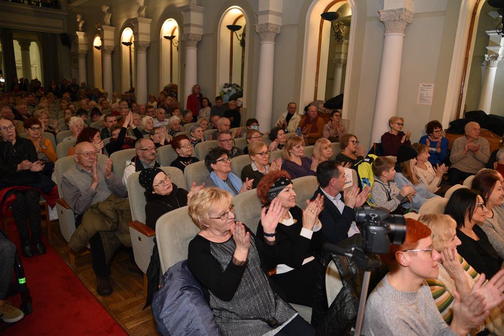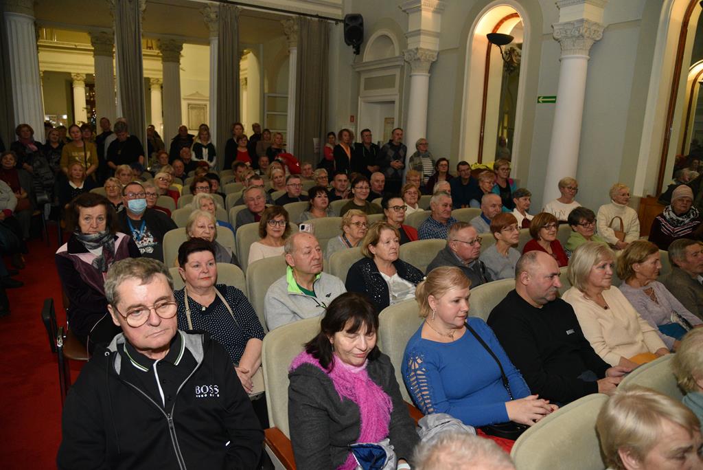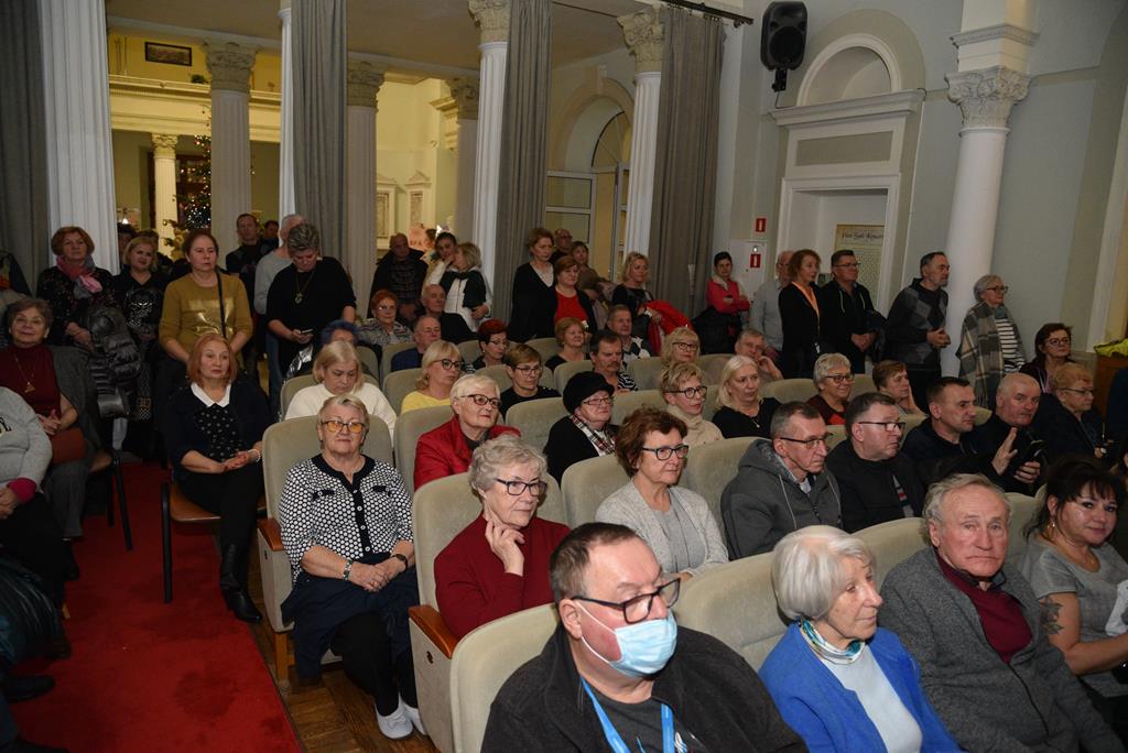 Grudniowy koncert w kameralnej sali koncertowej najstarszego buskiego sanatorium rozpoczął się o godzinie 19:00. By podziwiać utrzymany w świątecznych klimatach występ utalentowanej skrzypaczki zza naszej wschodniej granicy do Marconiego przybyło bardzo dużo osób. Zajęte były dosłownie wszystkie miejsca na widowni oraz na balkonie, sporo widzów siedziało na „dostawkach”. Ostatni, dla których zabrakło miejsc siedzących, oglądali ponad godzinny muzyczno-wokalny popis Pani Żanny na stojąco.