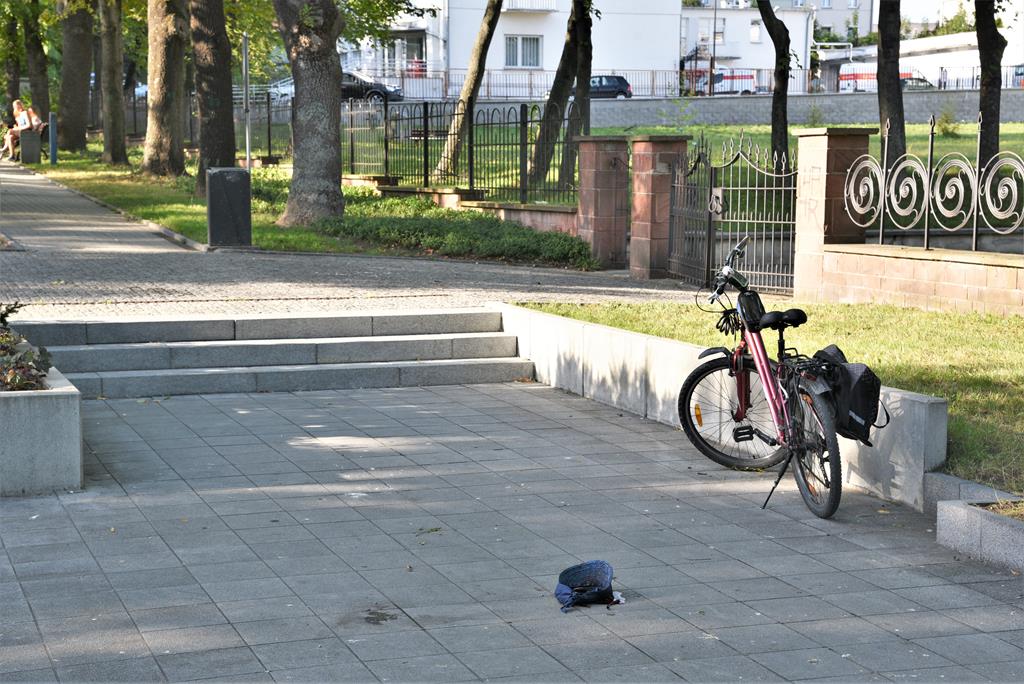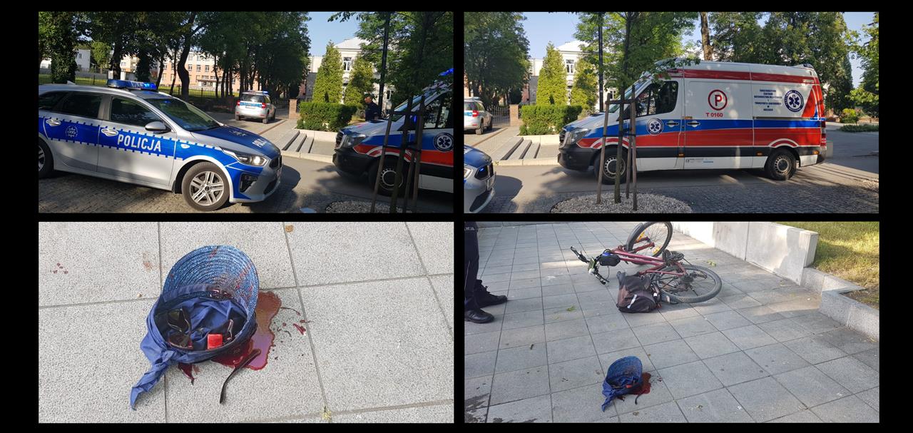 Z informacji uzyskanych na miejscu zdarzenia od naocznego świadka, wynika, że ok. 17:40 kobieta zjeżdżała rowerem, z góry, jakby od strony poczty, wzdłuż ogrodzenia I Liceum Ogólnokształcącego. Gdy dojechała do schodów znajdujących się na wysokości bramy wjazdowej na teren szkoły, doszło do wypadku. Wg świadka wyglądało to tak, jakby coś przyblokowało nagle rower na krawędzi stopni, a cyklistka na skutek działania siły bezwładności poleciała dalej do przodu” szczupakiem” i uderzyła całym ciałem o granitowe płyty kilka metrów dalej. Wskutek uderzenia – jak stwierdził świadek – kobieta doznała czasowej utraty przytomności i m.in. poważnego rozbicia łuku brwiowego.