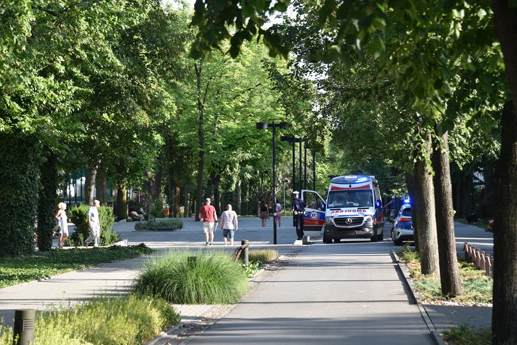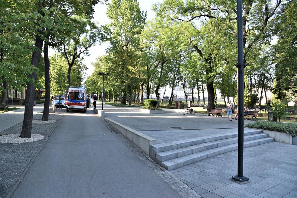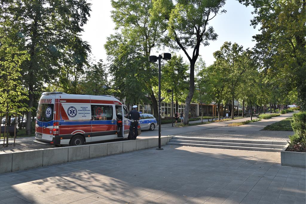 W ciągu bodaj kilku minut na miejsce zdarzenia przybyły powiadomione przez świadka służby: Pogotowie Ratunkowe i Policja. Ratownicy przystąpili niezwłocznie do udzielania pomocy poszkodowanej, a policjanci zabezpieczyli miejsce.