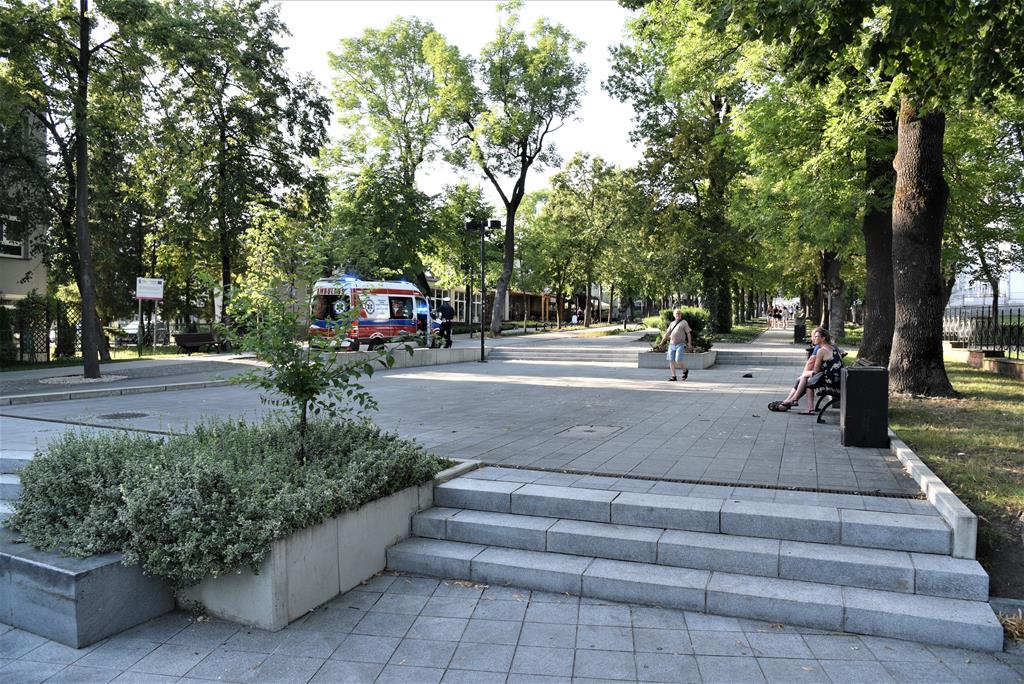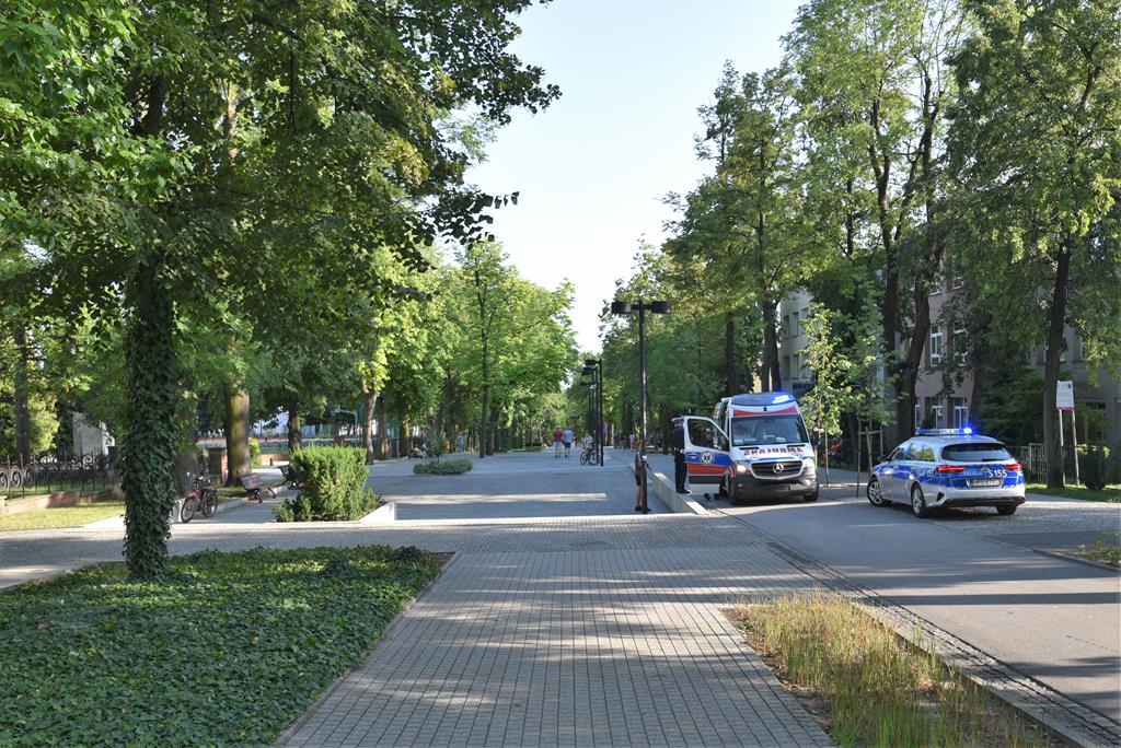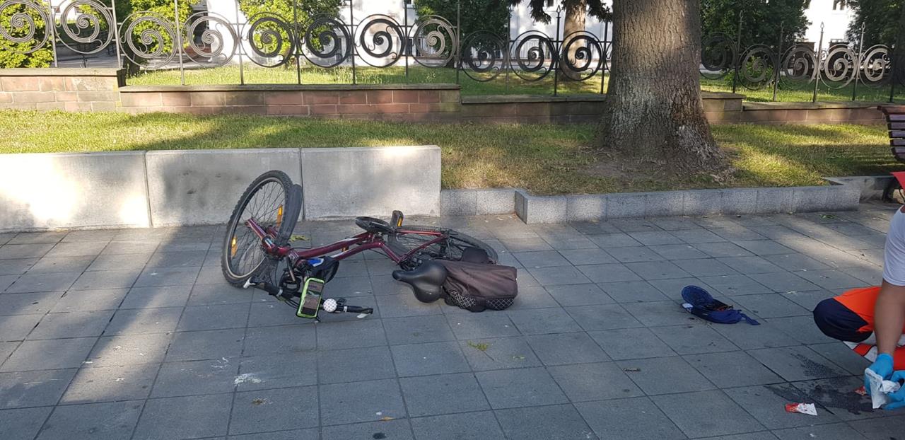 ○ 21.07.2022 r., ok. 18:10, Busko-Zdrój, Aleja Mickiewicza: Koszmarny upadek rowerzystki na buskiej „Mickiewce” [g’mapa♂] / fot. Jarosław Kruk infobusko.pl