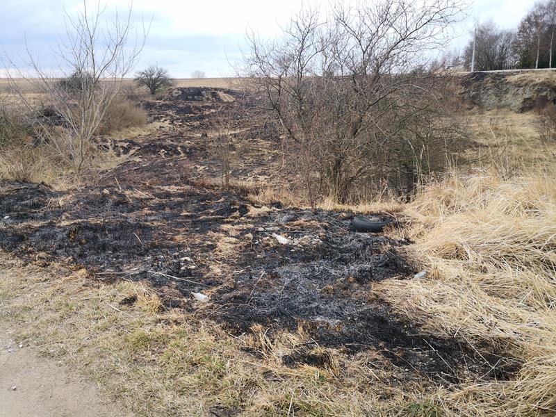 ○ Pogorzelisko na terenie rezerwatu skalno-stepowego Karabosy koło Buska-Zdroju♂, 5.03.2022 r. / fot. Jarosław Kruk infobusko.pl