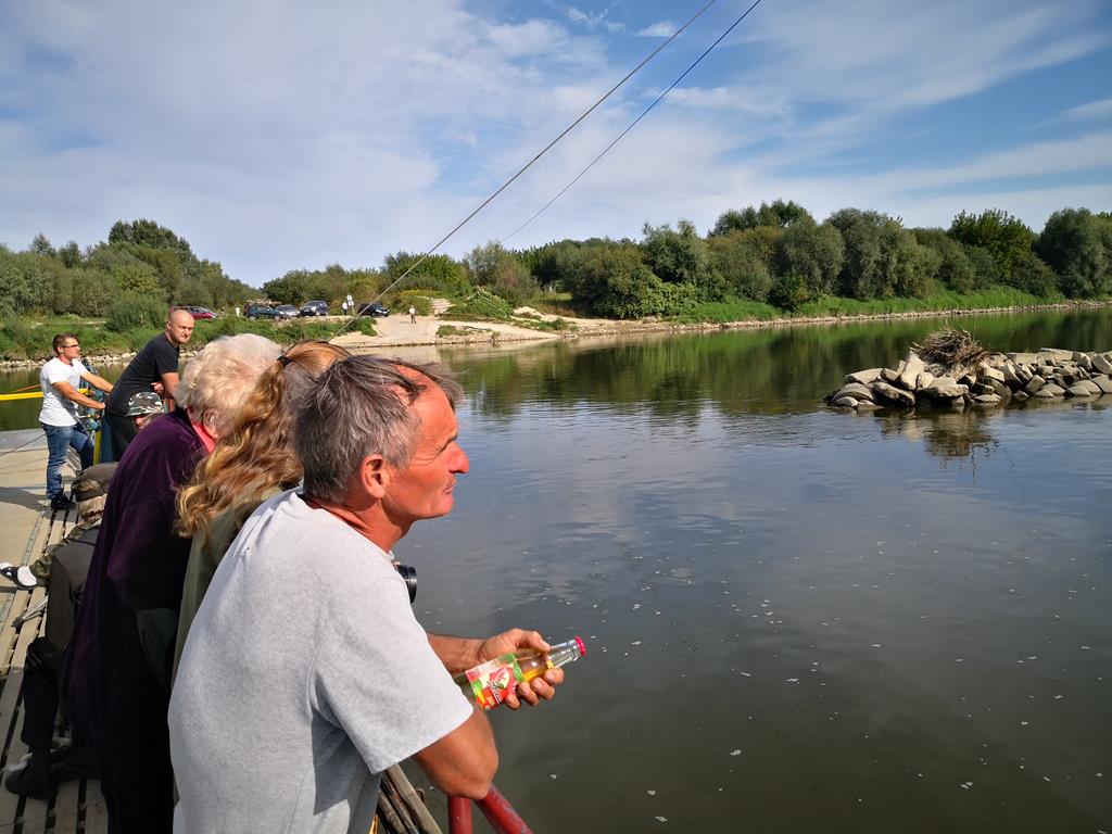 1. Dunajec uchodzi do Wisły w Opatowcu – google.com/maps♂ | 2. Nabrzeże promowe „Dunajcowe” w Ujściu Jezuickim | 3-4-5. Przeprawa, prom i jego kapitan. W głębi Dunajec, na pierwszym planie Wisła, 20.09.2020 r. / fot. Jarosław Kruk; infobusko.pl