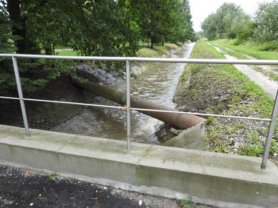 A następnie skonstatować, że dokładając odwodnień coraz to więcej dróg i placów Gmina nie zmieniła średnicy istniejącego kanału deszczowego DN 1000 przebiegającego od ul. Dmowskiego, obok Stawu Niemieckiego, ulicą Kusocińskiego do wylotu w parku Zdrojowym na wysokości ul. Waryńskiego.