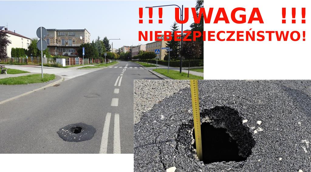 miejmy nadzieję że miasto jest dobrze ubezpieczone na wypadek ewentualnych odszkodowań w przypadku uszkodzeń pojazdu czy opukac gorszego w skutkach zdarzenia w efekcie kontakty z opisywaną dziura?