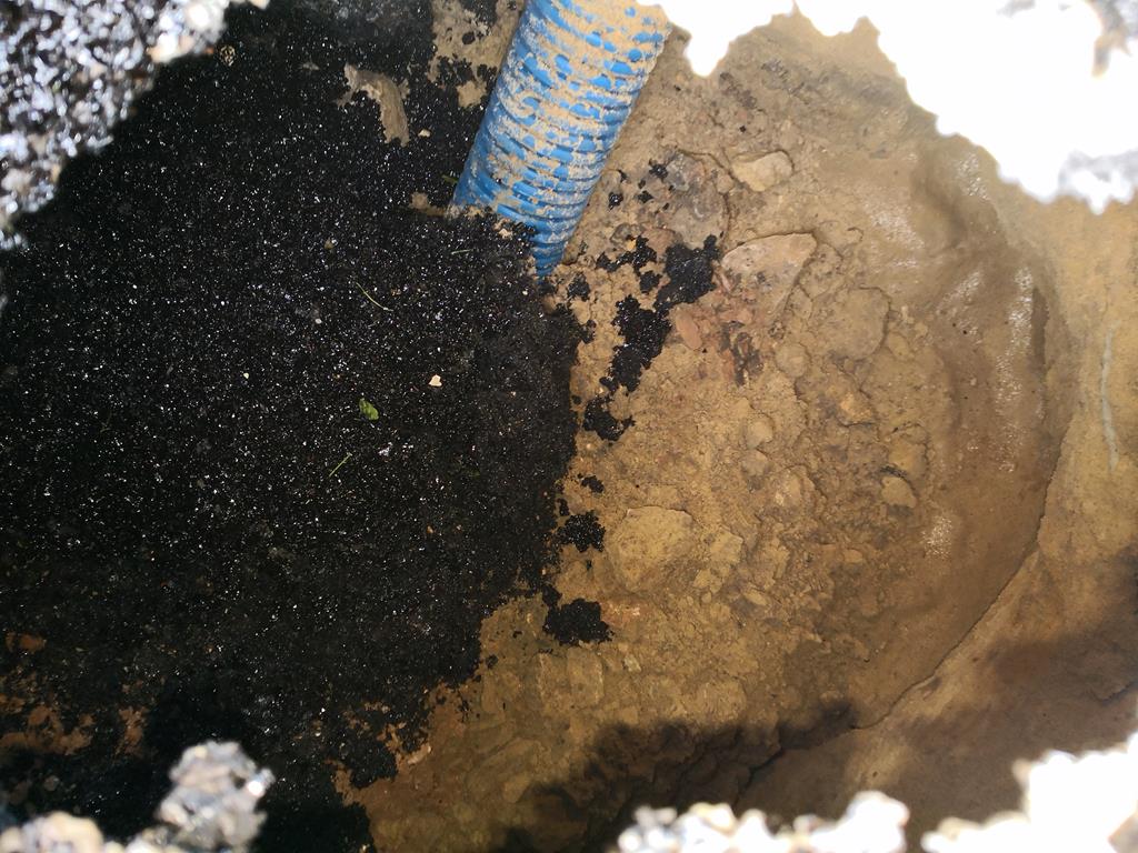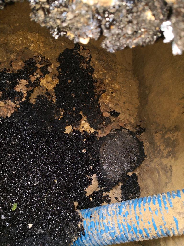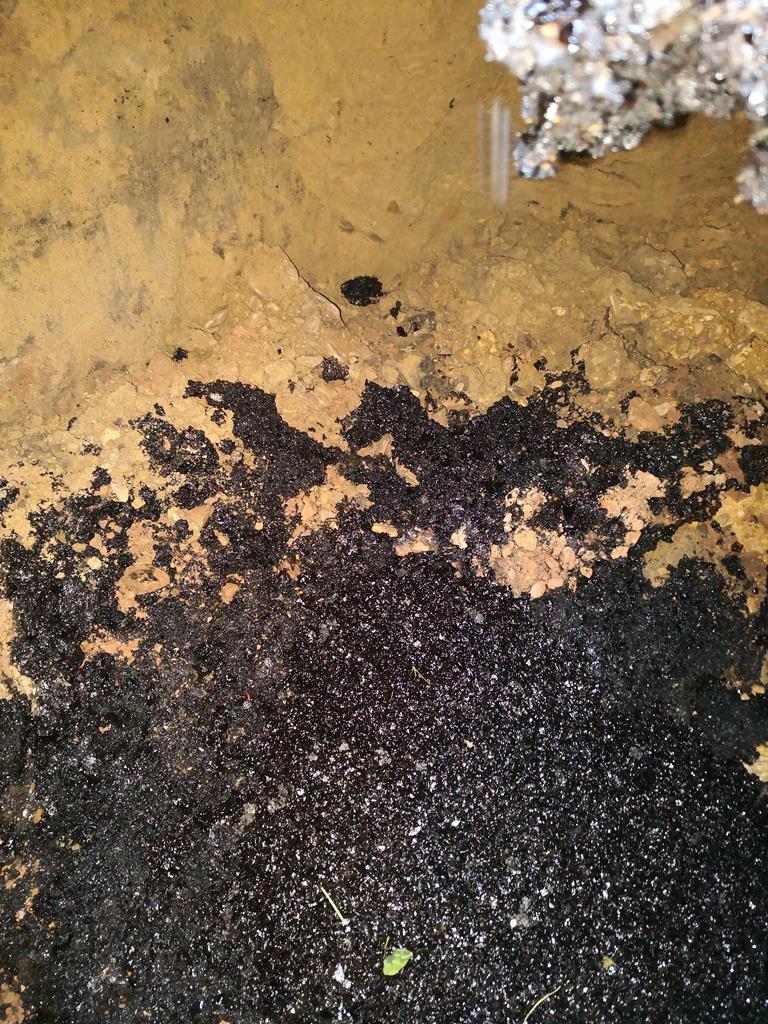Zaglądając do środka odniosłem wrażenie, że prawdopodobnie ten niebezpieczny ubytek-pułapka powstał wskutek miejscowego wypłukania podbudowy drogi.