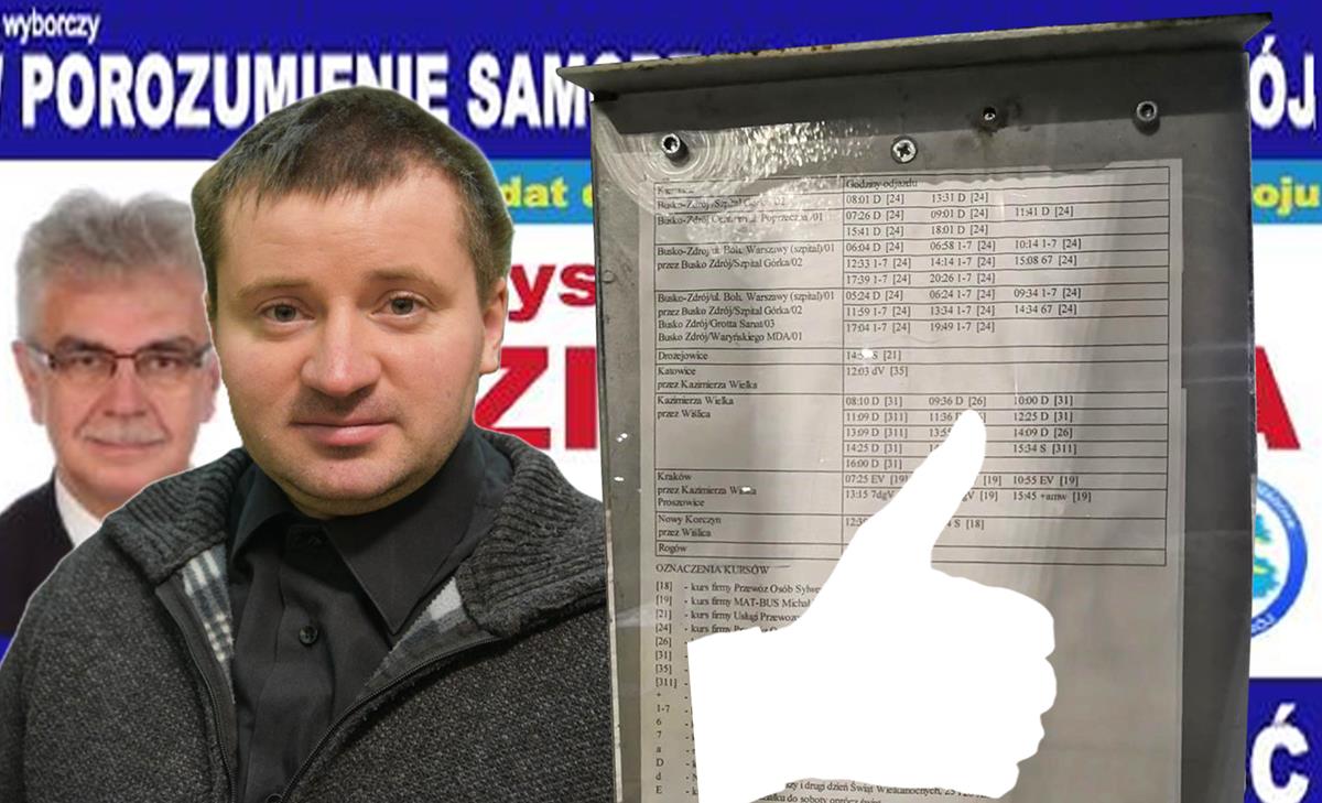-Witam, Informuję, iż jak na razie powrót pana Dziarmagi na stanowisko dyrektora Zakładu Usług Komunalnych ma tę niewątpliwą zaletę, iż częściowo naprawił problem, który naświetliłem w skardze do Rady Miejskiej ♂ w przedmiocie informacji pasażerskiej na przystanku na ulicy Starkiewicza, z którego korzystają podróżni wybierający się do Krakowa. Rozkład jazdy został wreszcie wydrukowany większą czcionką i umieszczony w gablocie wewnątrz wiaty przystankowej. To – wbrew pozorom – duży postęp, bo według pana wiceburmistrza Wieczorka tak trywialnej rzeczy, jak powiększenia rozkładów jazdy „niedałosie”… – informuje na wstępie Listu do Redakcji buski aktywista Łukasz Nowak