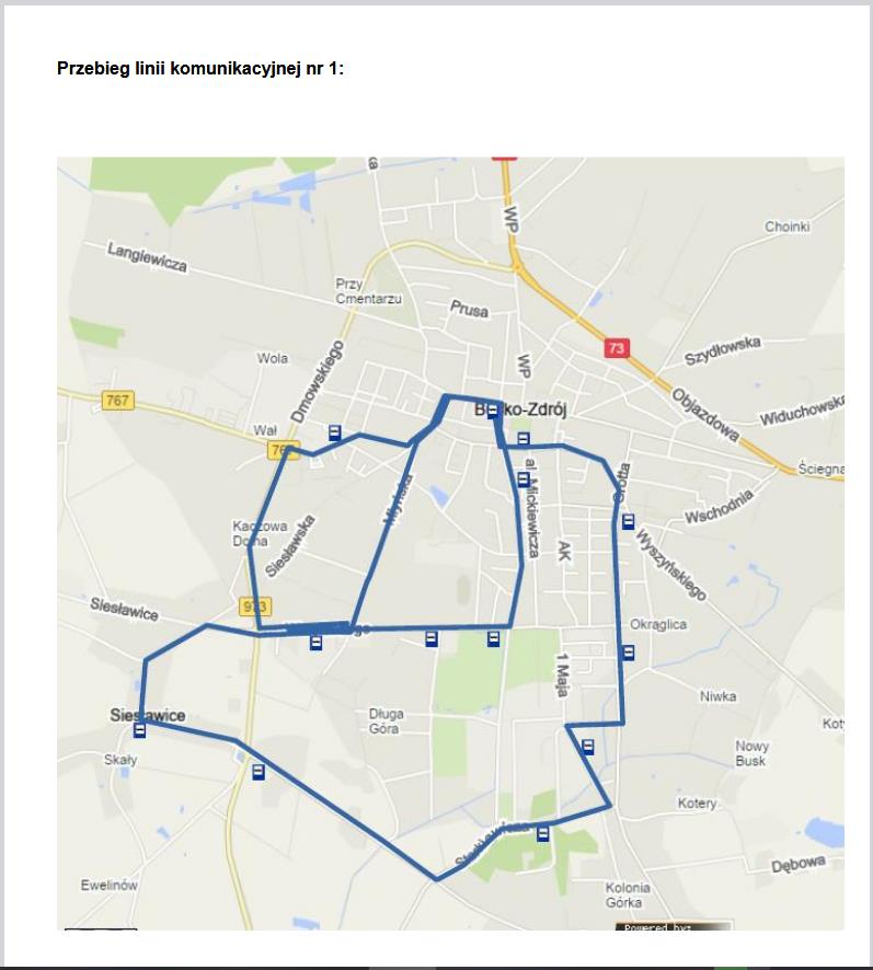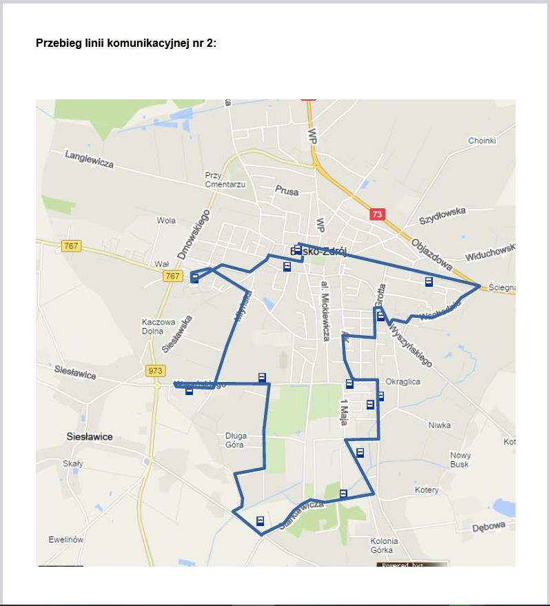 Zaproponowałem na początek 2 linie, z których jedna odjeżdżałaby spod hotelu Słoneczny Zdrój♂, a druga spod Szpitala na Górce♂. To ułatwiłoby dojazd nie tylko mieszkańcom miasta, lecz również kuracjuszom, czy gościom hotelowym na miejskie targowisko. Z drugiej strony mieszkańcy centrum Buska zyskaliby dojazd do Mrówki oraz parku handlowego Magdziaków.