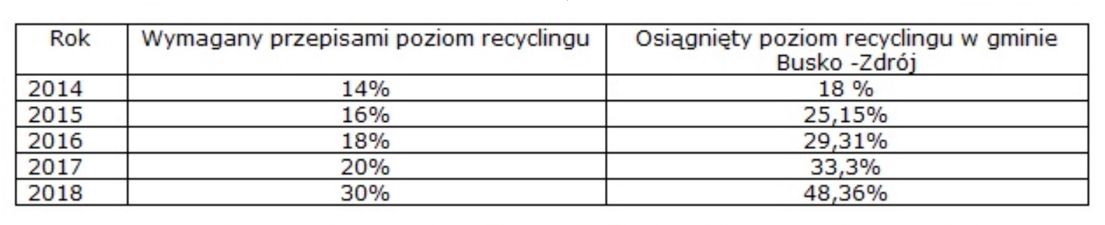 Poziomy recyklingu osiągane przez gminę Busko-Zdrój: