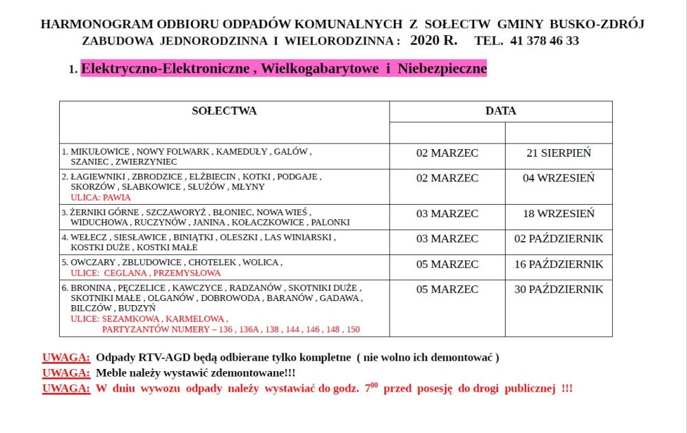 ▲  Harmonogram odbioru odpadów – sołectwa / źródło: umig.busko.pl