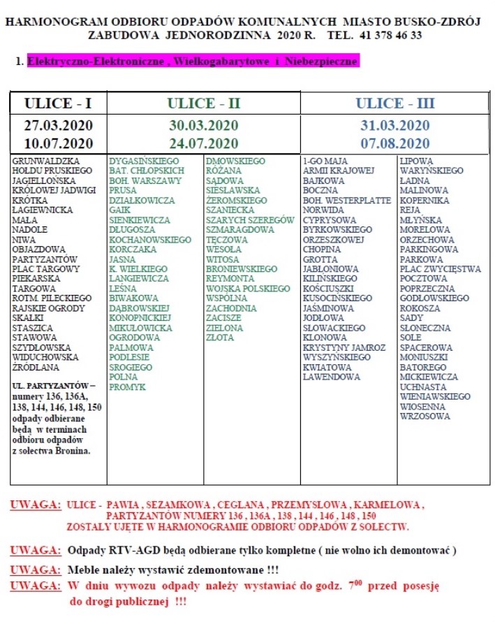 Harmonogramy w wersji .pdf dostępne są na stronie UMiG w Busku-Zdroju: