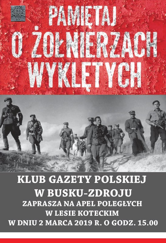 Młode Busko: Zapraszamy na okolicznościowy, organizowany po raz siódmy przez buski Klub Gazety Polskiej uroczysty apel poległych do Lasu Koteckiego  – miejsca jednej z największych bitew podziemia antykomunistycznego w 1945 roku, stoczonej przez oddział Narodowych Sił Zbrojnych porucznika Stanisława Sikorskiego „Jaremy”  bohatersko walczący o wolność i niepodległość Polski. Cześć i Chwała Bohaterom!