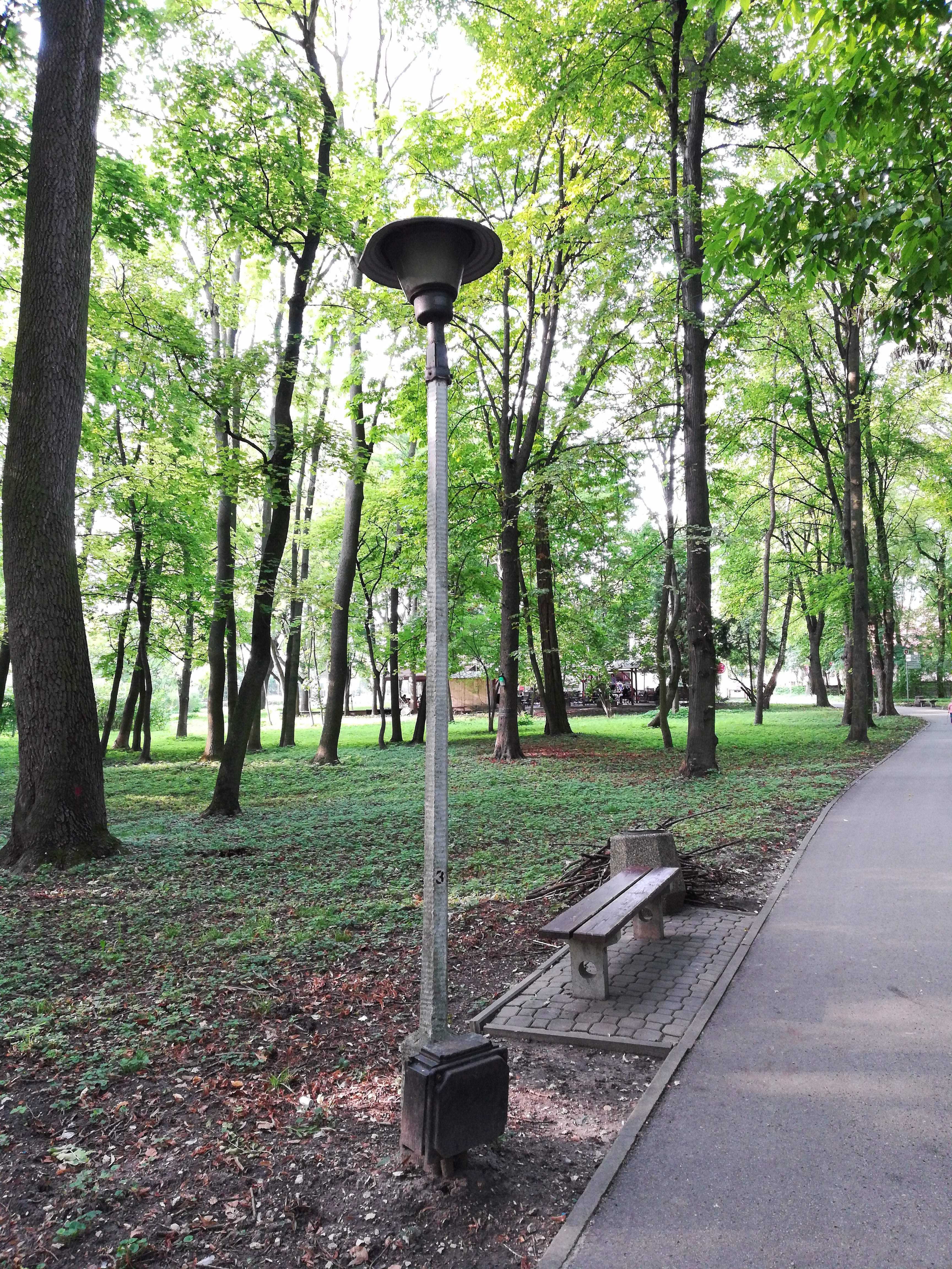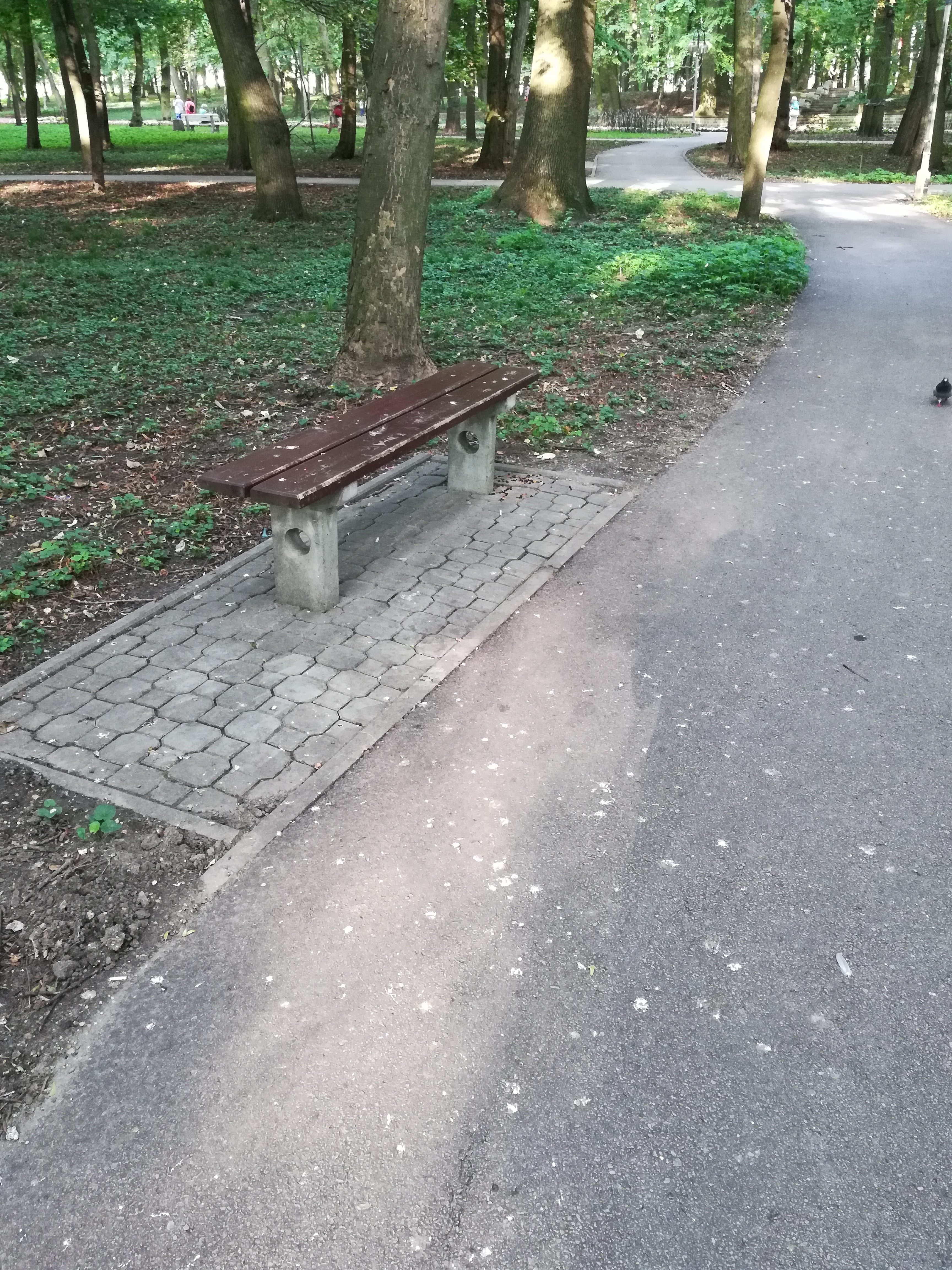 Moje spacery po parku wyglądają nieco inaczej. Raczej skupiam się na tym co ładne i cieszy oko. Przedstawiony spacer jest spacerem według Pana Kamila. Ławki są zanieczyszczone głównie przez ptaki więc należy zlikwidować wszelkie ptactwo z miasta i po problemie ławki będą czyste. Ławki drewniane zmieńmy na betonowe i nikt im nie dam już rady.