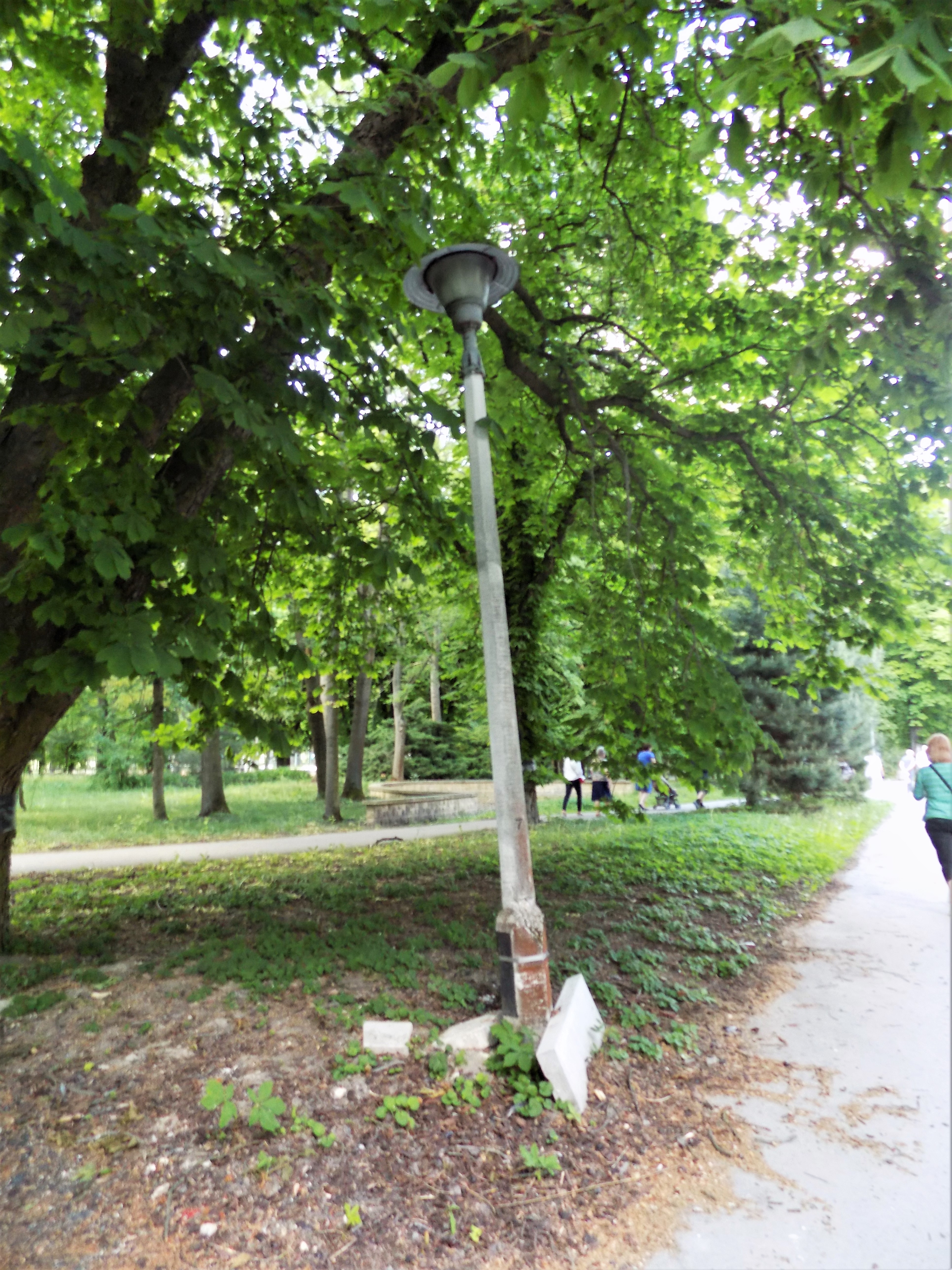 drogi do Widuchowy czy Oleszek i tam pasuje, ale nie w parku miejskim zaprojektowanym przez wielkiego architekta Henryka MarconiegoPark wygląda na mocno zaniedbany. Zmurszałe, szpetne latarnie, które sądząc po wyglądzie mają może i pół wieku, których chyba nikt nie konserwuje. Niektóre ławki uszkodzone, czekają miesiącami, a może już latami na reparację. Inne upstrzone odchodami ptaków, stoją i czekają długo aż ktoś je doprowadzi do porządku. Oj przewraca się w grobie pan Marconi, zgrzytają zębami śp. ogrodnicy Hanusz i Imosa.