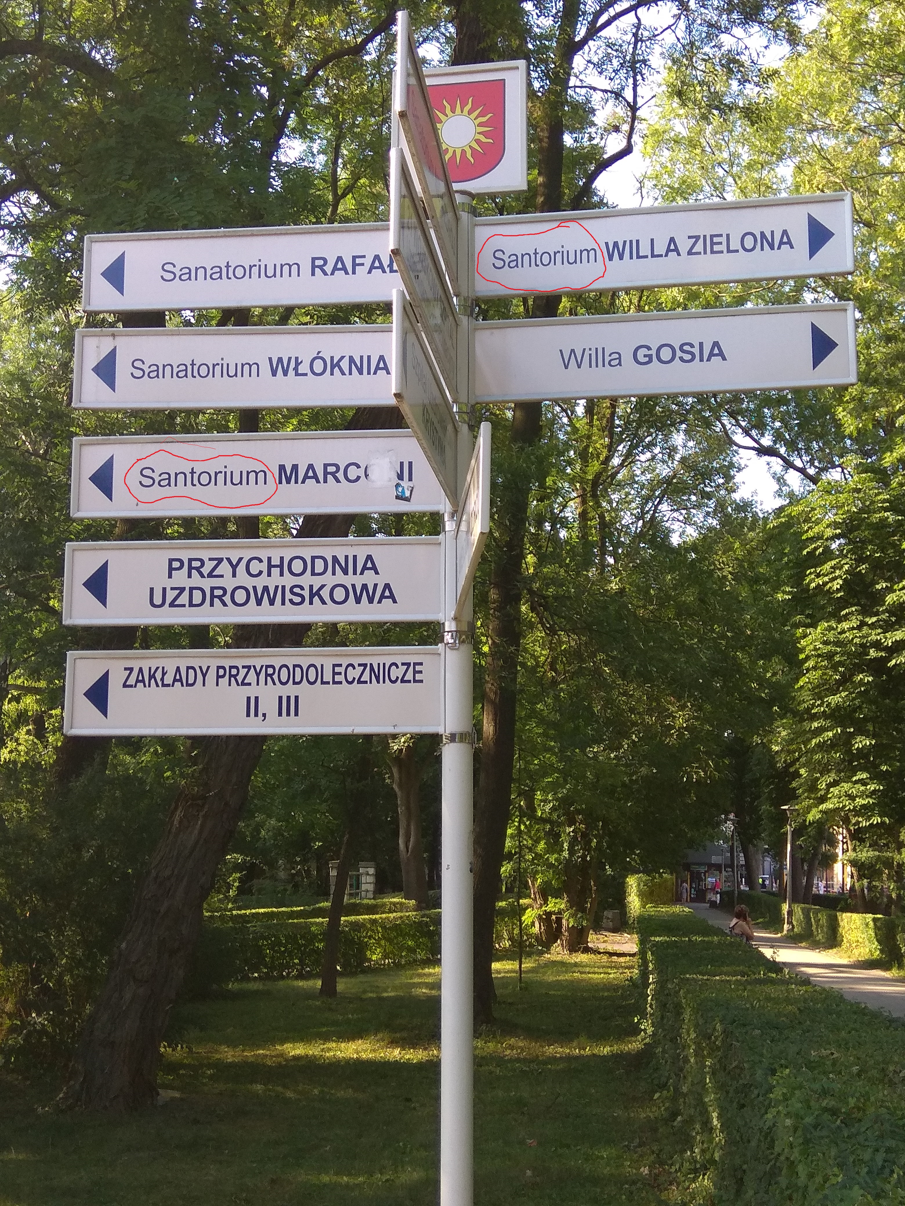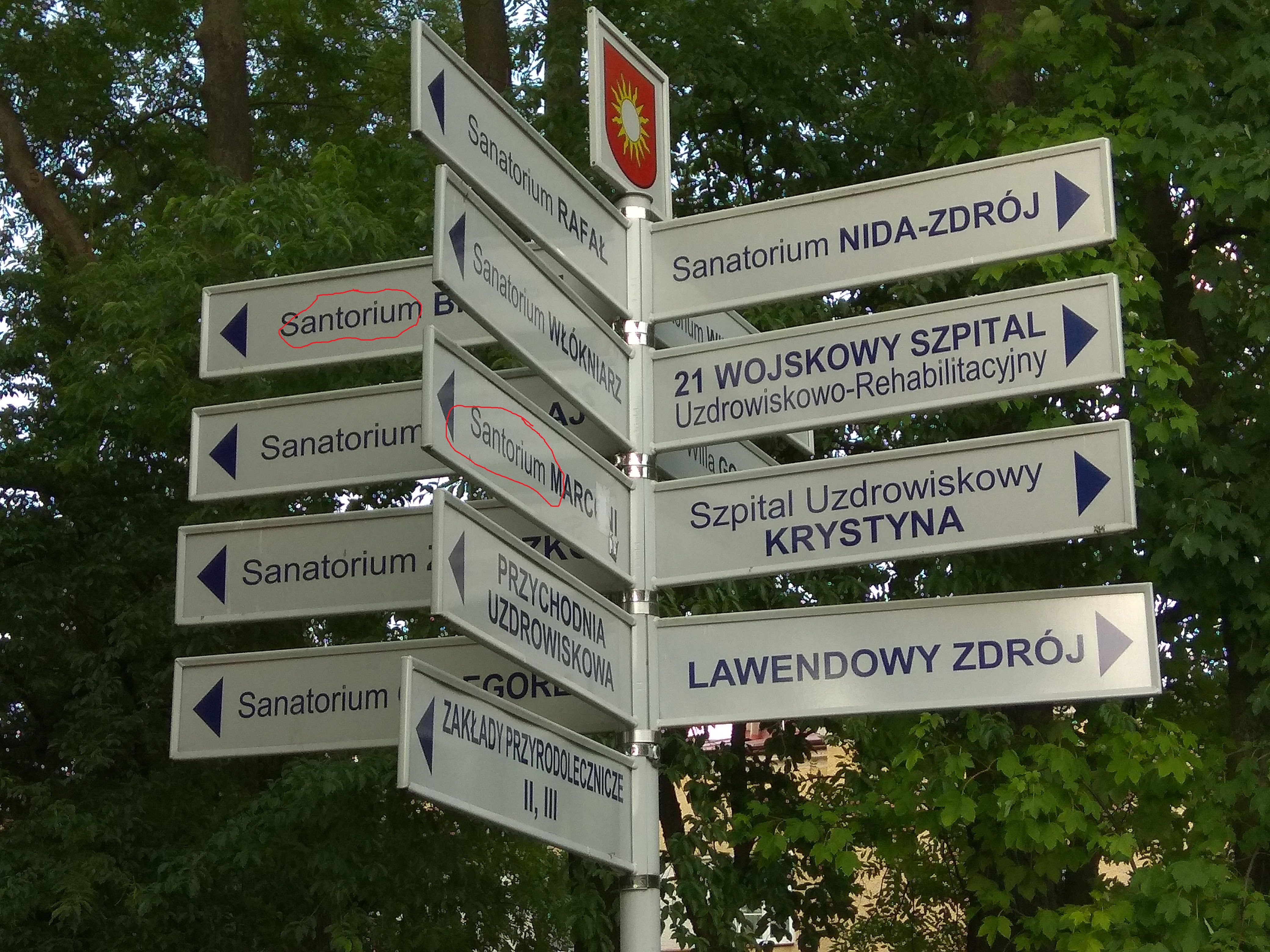 I co zagubiony gość uzdrowiska może na nich przeczytać – ano, że w Busku-Zdroju są Sanatoria i Santoria 🙂 Ciekawe czym jedne się różnią od drugich? Żartuję sobie oczywiście, bo i mnie zdarza się robić błędy, ale w tym przypadku sprawa nie jest taka błaha, jakby na pierwszy rzut oka można pomyśleć. Raz, że źle świadczy o znajomości ortografii , ogólnie w mieście słońca, dwa, że chyba nie jest tak dobrze jak być powinno z procedurami kontrolnymi przy wykonywaniu zadań.