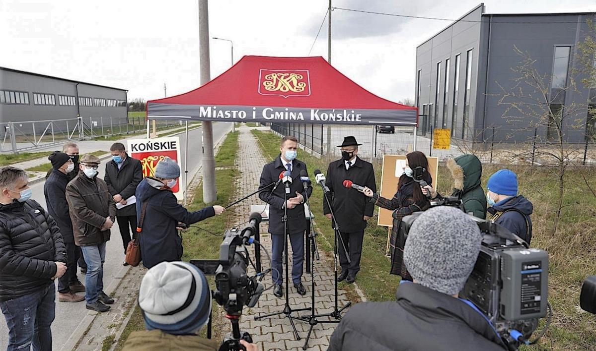 ○ Końskie, 26.04.2021: Konferencji ministra Cieślaka i burmistrza Obratańskiego / fot. naszemiasto.pl♂