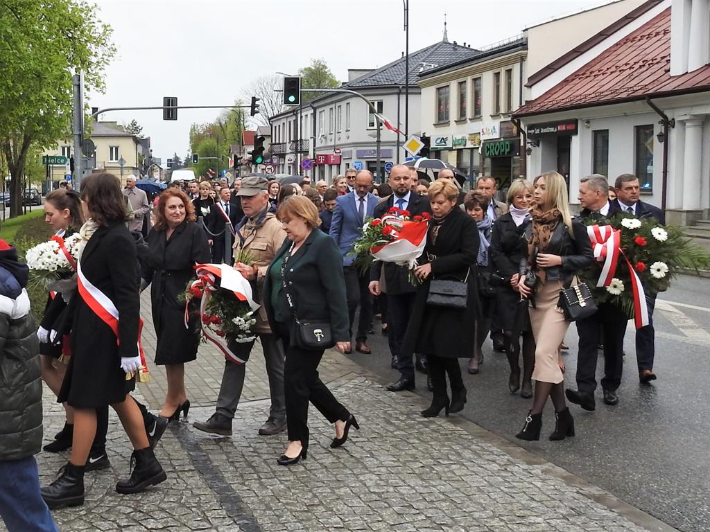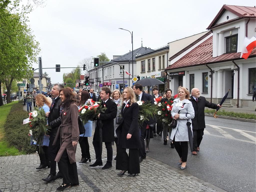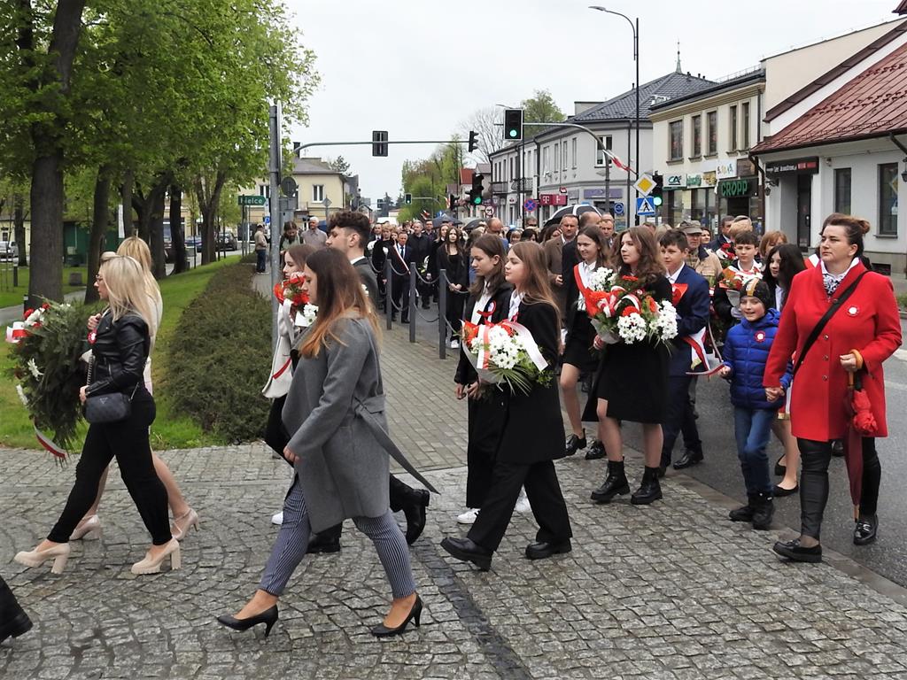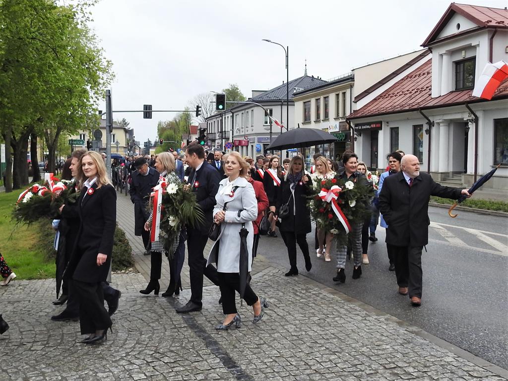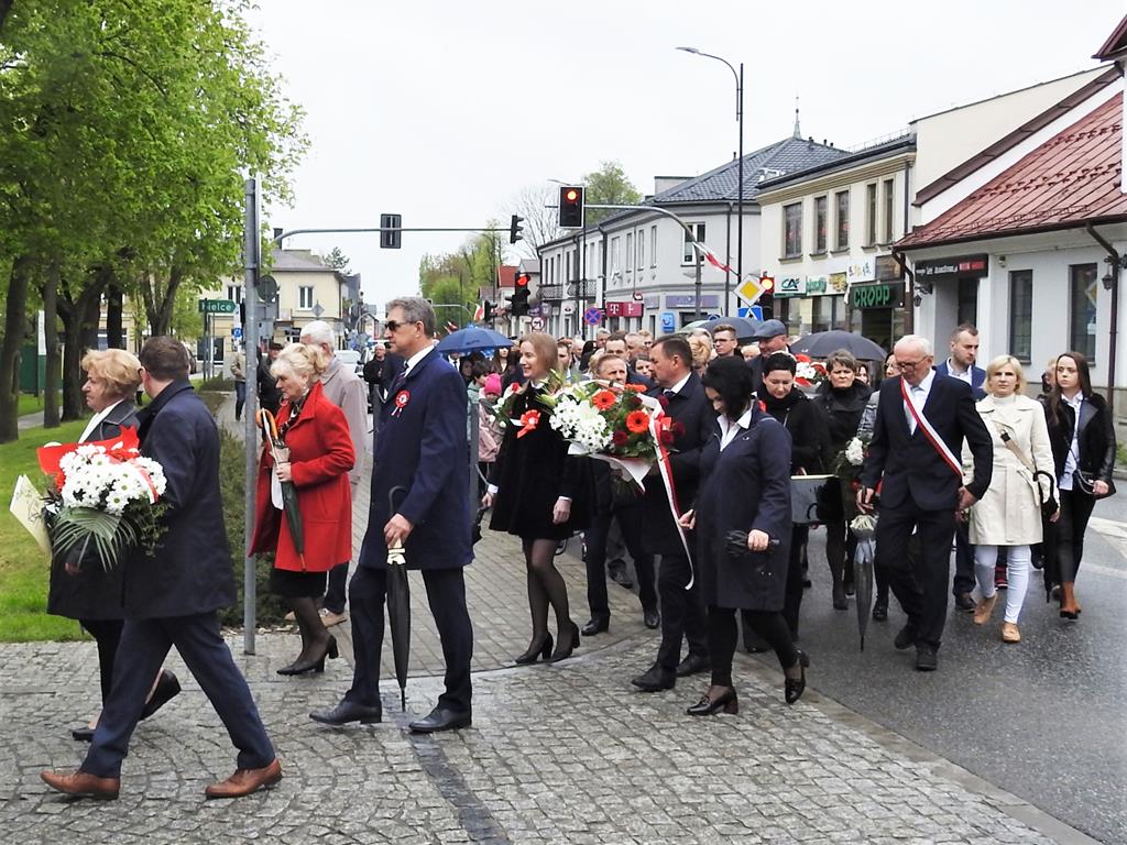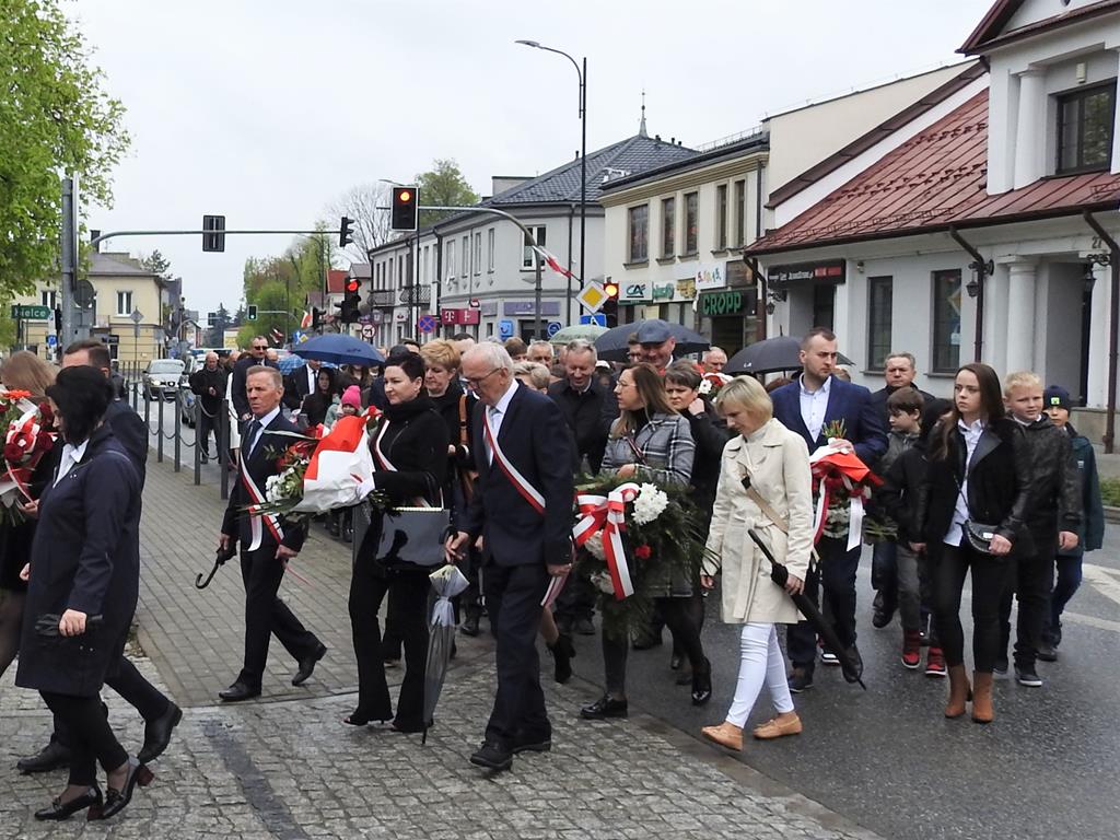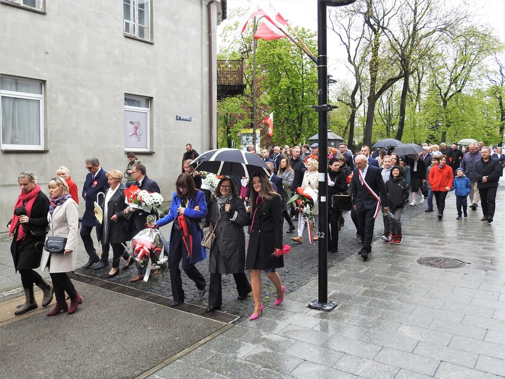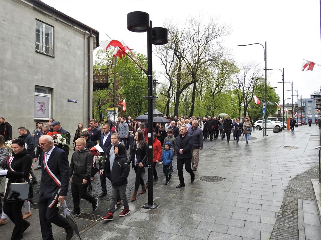 U zbiegu Alei Mickiewicza i ul. Batorego delegacje złożyły kwiaty na płycie Marszałka Józefa Piłsudskiego, pod pomnikiem Męczeństwa oraz pod pomnikiem Żołnierzy Batalionów Chłopskich. Później wszyscy ruszyli pod pomnik Tadeusza Kościuszki stojący przed I Liceum Ogólnokształcącym im. T.Kościuszki. U stóp monumentu wodza Insurekcji 1794 r.’ odśpiewano hymn, złożono wiązanki kwiatów. Odbył się pokaz mażoretek i orkiestry dętej.